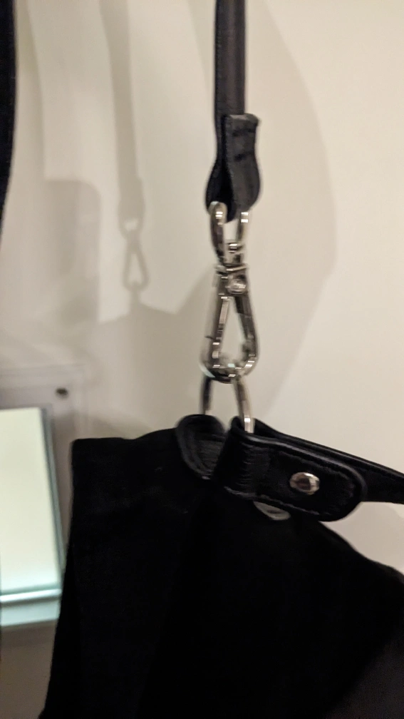 adjustable long strap that can also be removed to use the short shoulder strap instead.