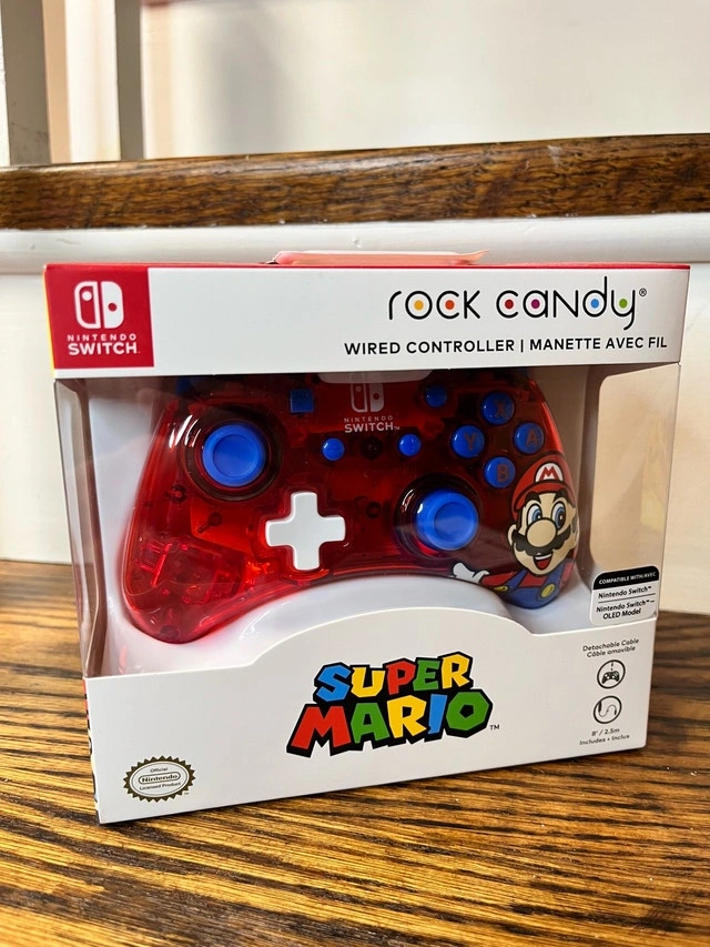 Dive into your favorite Nintendo Switch games with this Rock Candy wired controller featuring Super Mario artwork. This controller is brand new, still sealed in its original packaging, ready to enhance your gaming experience with a splash of color and iconic design. Cool transparent red design. Officially licensed by Nintendo. Wired connectivity for lag-free gaming. Ergonomic design for comfortable play. Eye-catching Super Mario graphics. Check out my other listings for more cool stuff!