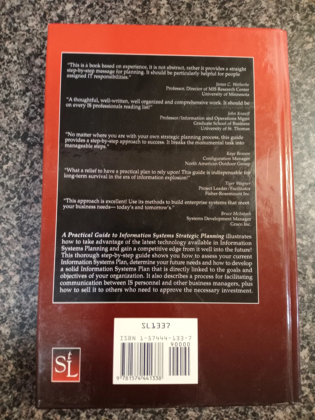 This book offers a step-by-step guide to information systems strategic planning. It shows how to leverage technology and plan for future needs. It also describes processes for facilitating communication between IS personnel and business managers.