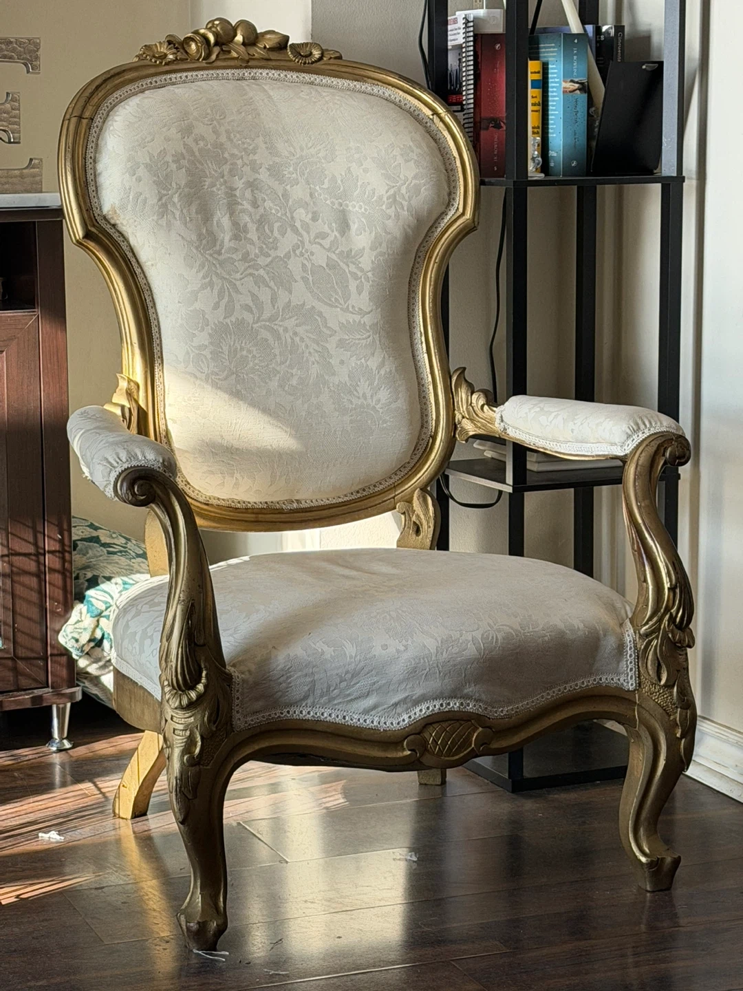Buy & SellOrnate Gold Armchair with White Floral UpholsteryOrnate Gold Armchair with White Floral Upholstery$50Pickup in AjaxConditionGoodWHERE TO MEETCheck LocationView MapSELLEREduardoWestney Heights150 reviews0 chats·3 favorites·32 viewsSEND CHAT TO SELLERHi Eduardo! I’m interested in your listing.Hi Eduardo! I’m interested in your listing.Get the Karrot app to chatSign In to chat