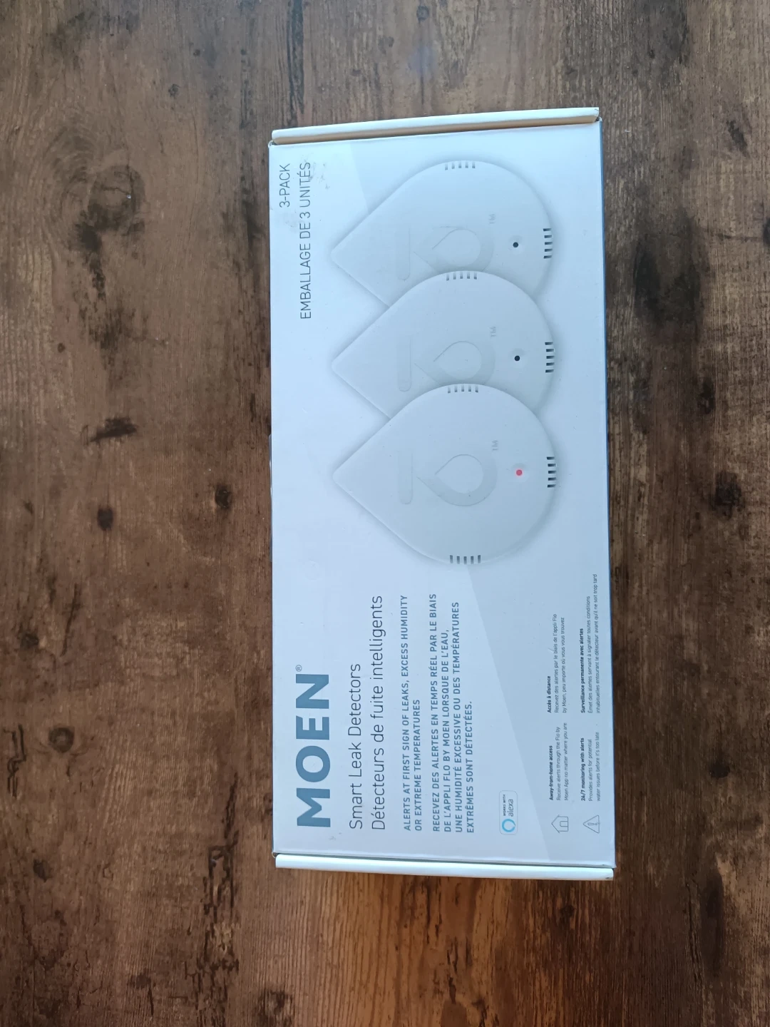 This is a 3-pack of MOEN Smart Leak Detectors. They provide alerts for leaks, excess humidity, or extreme temperatures. Receive real-time notifications through the Flo by MOEN app.