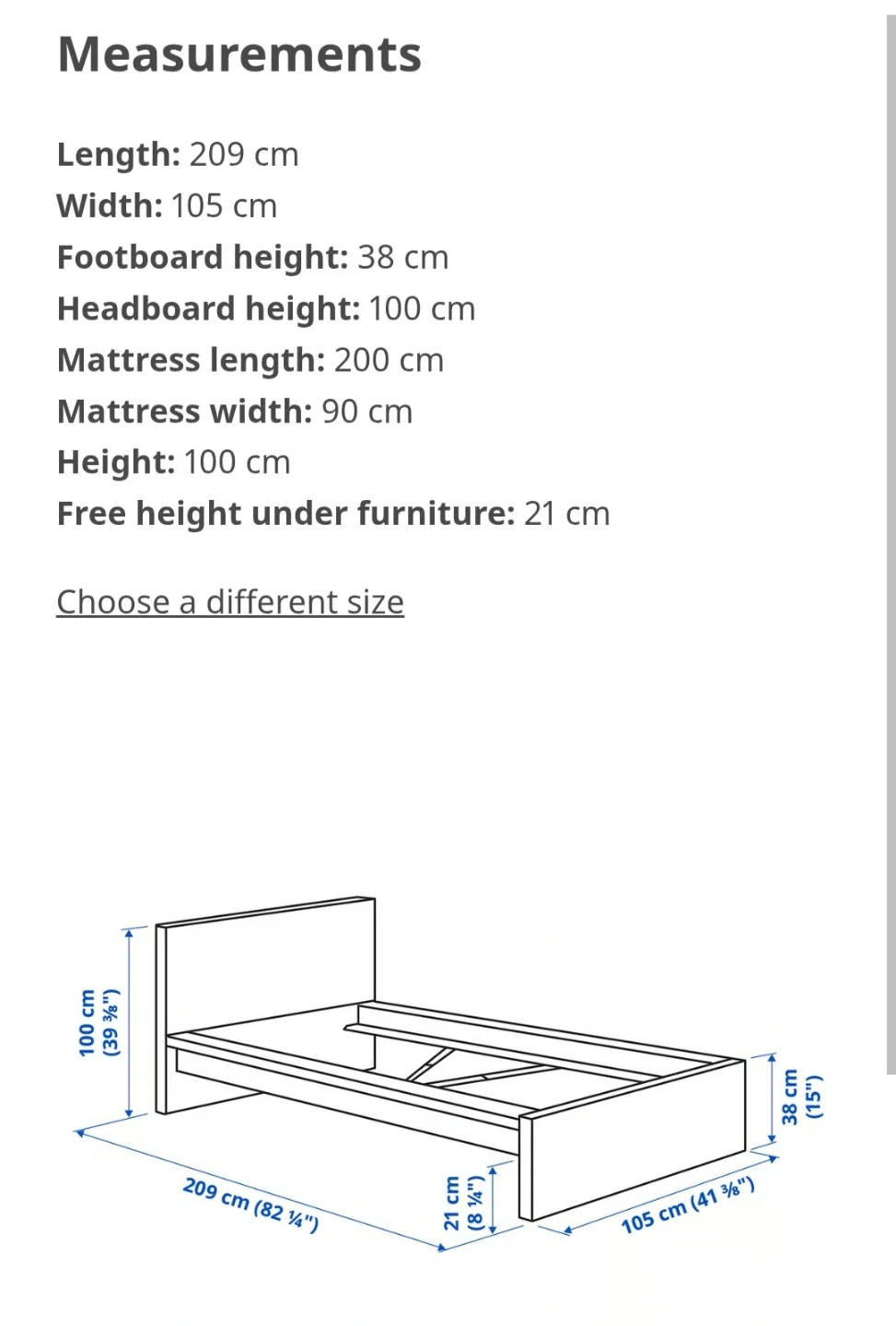 Very clean single bed frame with no scratches or damage. The size is shown in the photos.