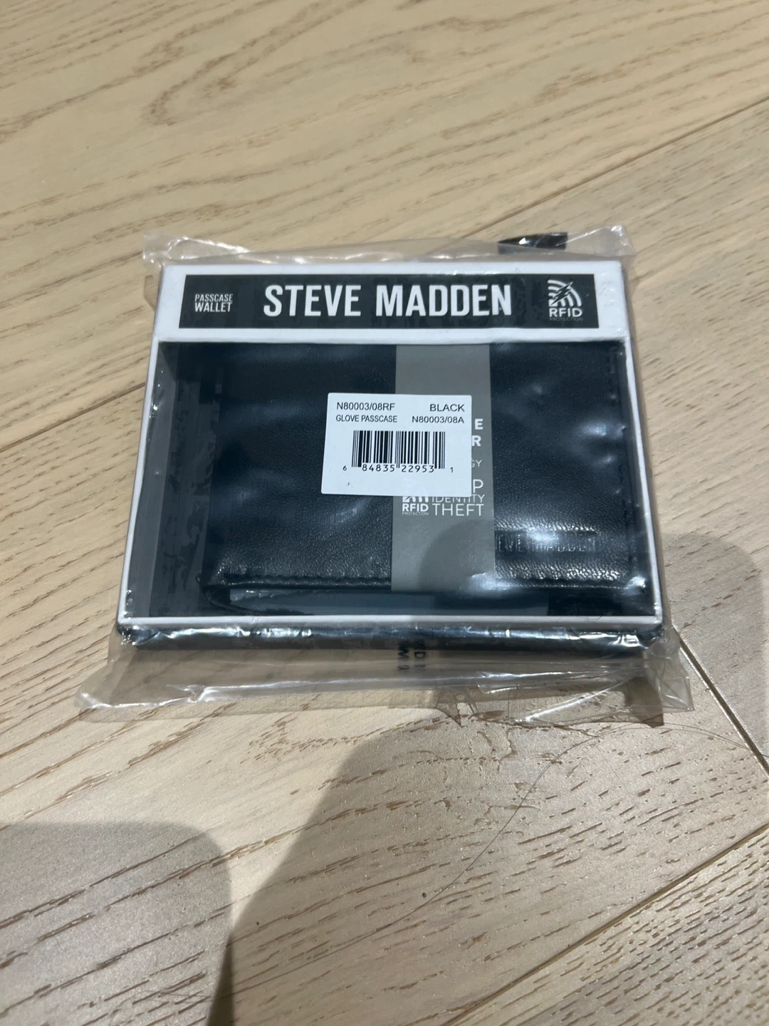 Selling a brand new Steve Madden black passcase wallet! It's still in the original packaging. This wallet features RFID protection to keep your information safe and secure. Perfect for everyday use!