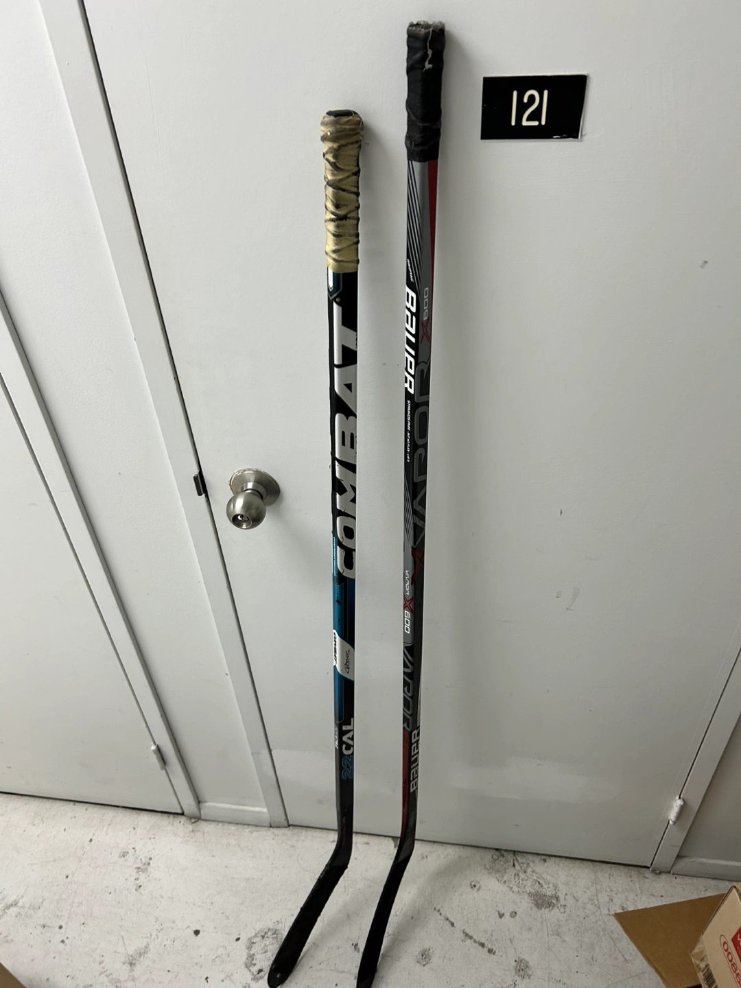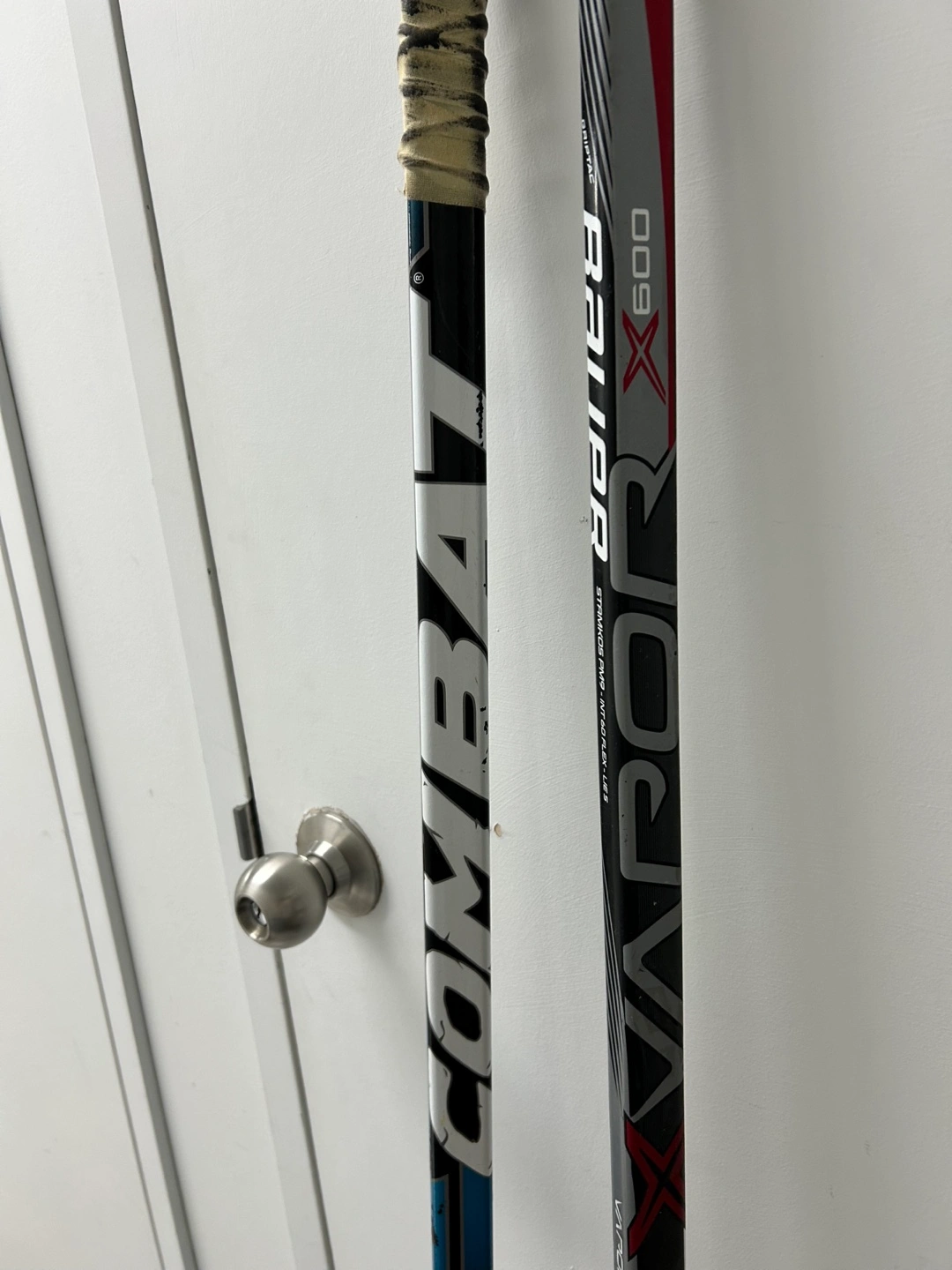 Selling two hockey sticks (combat 22 cal & Bauer Vapor X600 stamkos pm9) with free hockey pucks. All for $30.