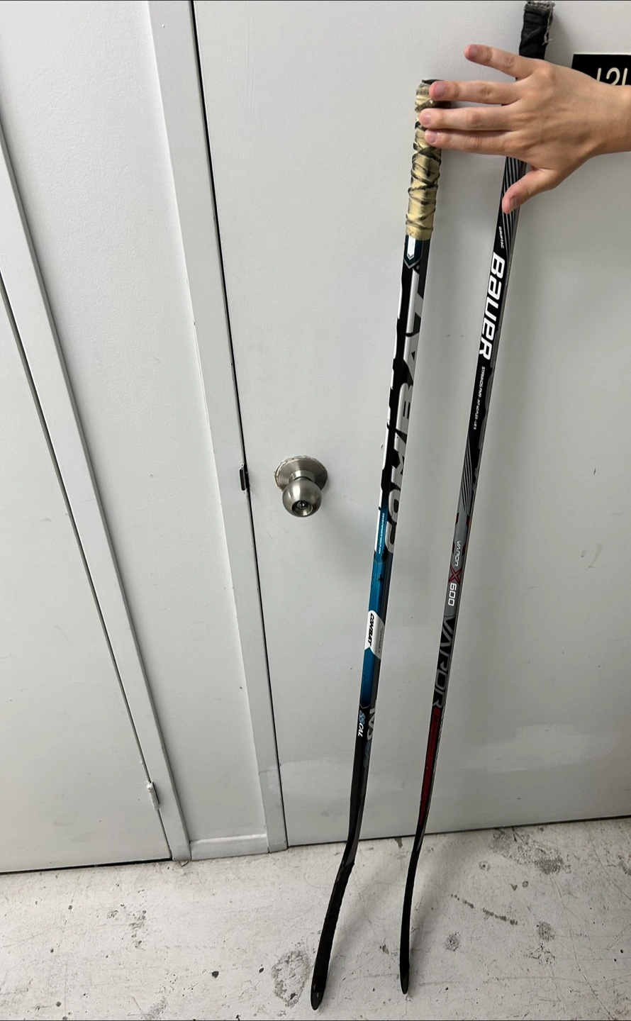 Selling two hockey sticks (combat 22 cal & Bauer Vapor X600 stamkos pm9) with free hockey pucks. All for $30.