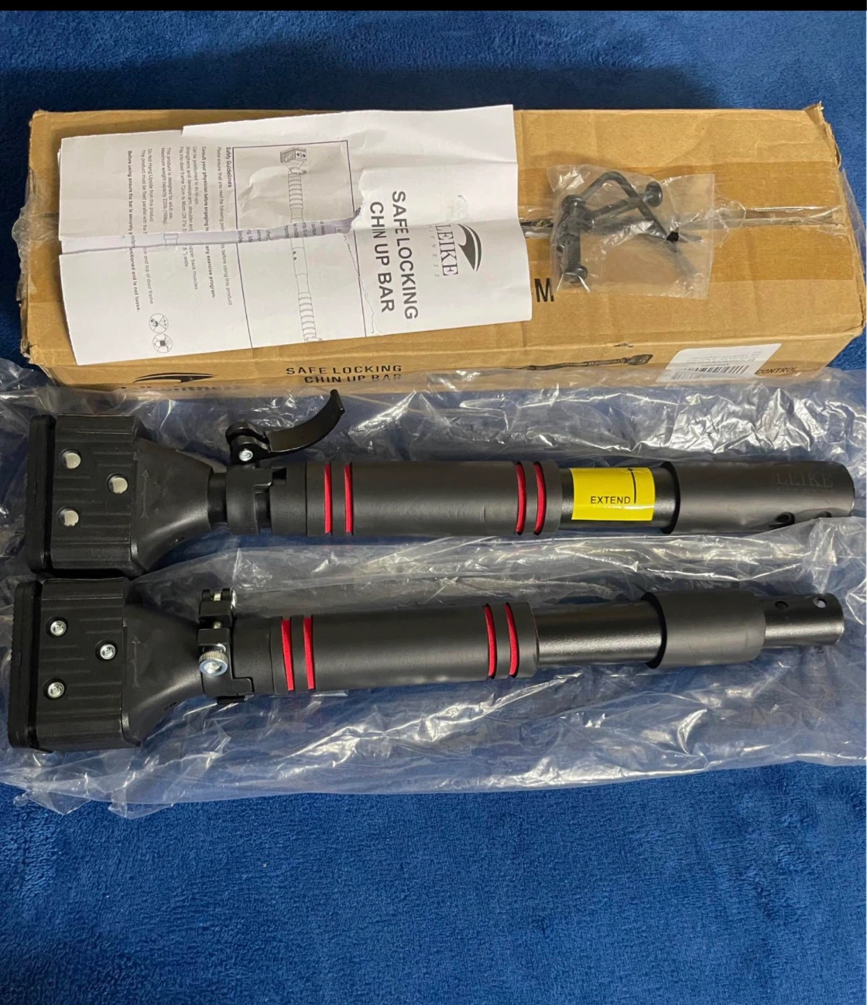 This pull-up bar features a drill-free, self-locking design with a telescopic composite steel pipe for adjustable length. It has a rubber anti-slip base and thickened handguard foam padding for comfort and safety. Suitable for solid wood door frames, security doors, and smooth corridor walls. Great for home workouts!