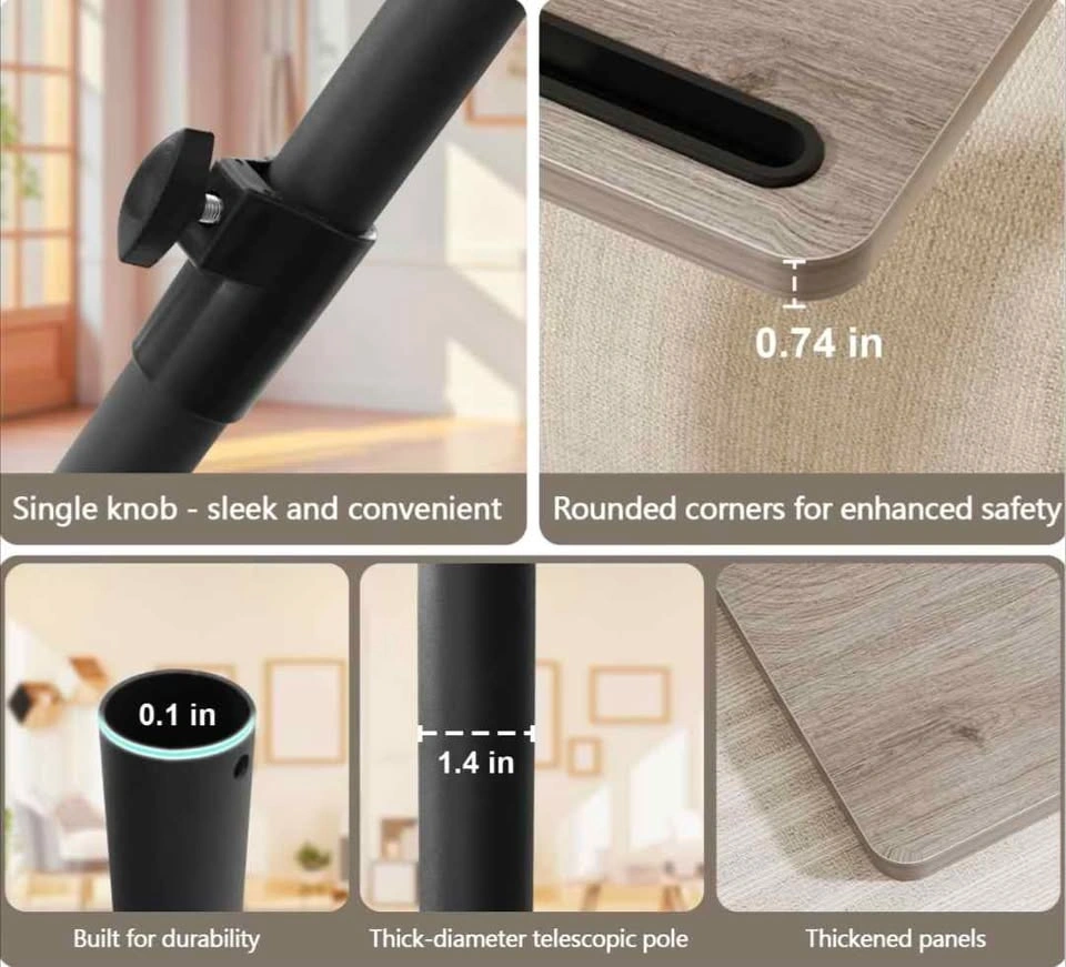 Sofa Armrest Tray Table - 360° Swivel, Height Adjustable