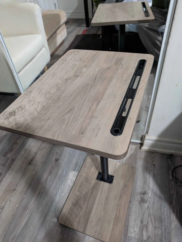Selling this brand new, boxed sofa armrest tray table for $40. It's a great space-saving solution for small rooms. Use it as an eating tray, coffee table, snack holder, or TV table. It's also handy as a bedside table, wine table, or bathtub tray, with a built-in slot for your phone. The height is adjustable from 18" to 33", and the panel swivels 360° for flexible positioning. Easy to assemble and makes a practical gift for housewarmings or birthdays. The board is made of FSC certified materials.