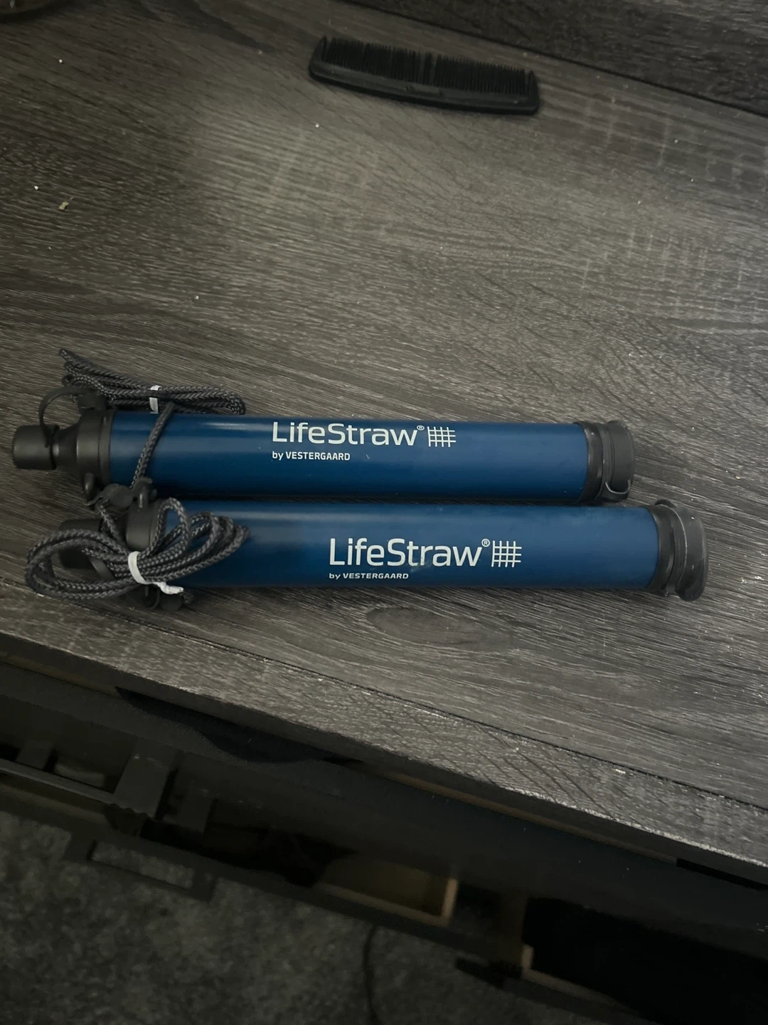 These are LifeStraw water filters by Vestergaard. They're great for outdoor activities and emergencies. Each straw filters out bacteria and protozoa from contaminated water.