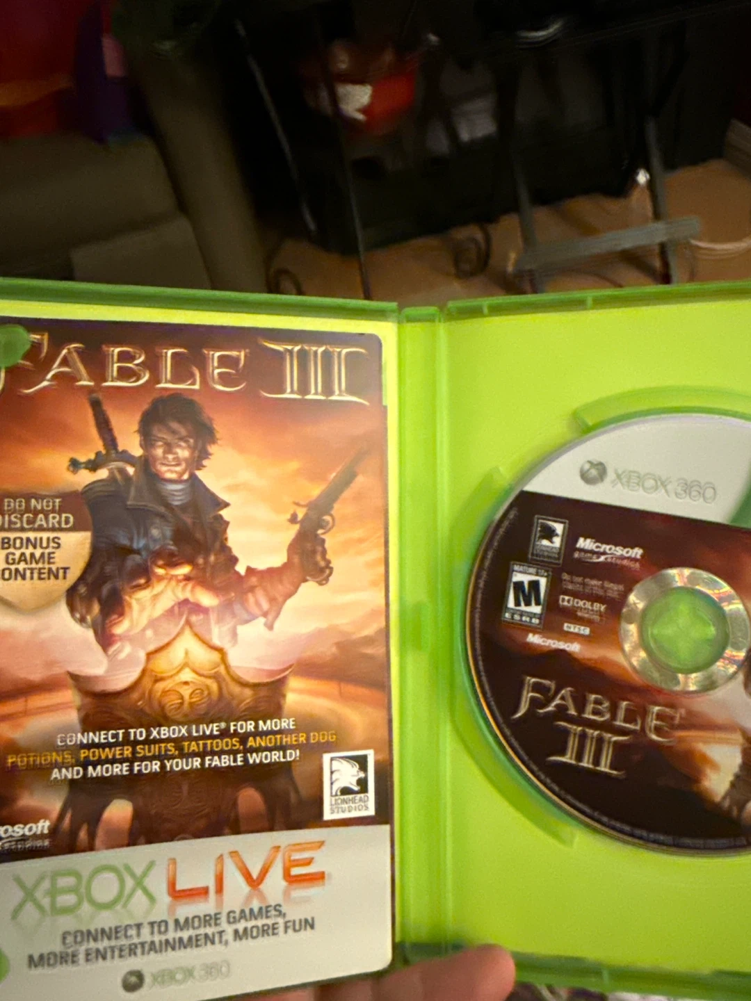 Selling a copy of Fable III for the Xbox 360. It's in great shape and ready for a new adventure. Connect to Xbox Live for more potions, power suits, tattoos, another dog and more for your Fable world!