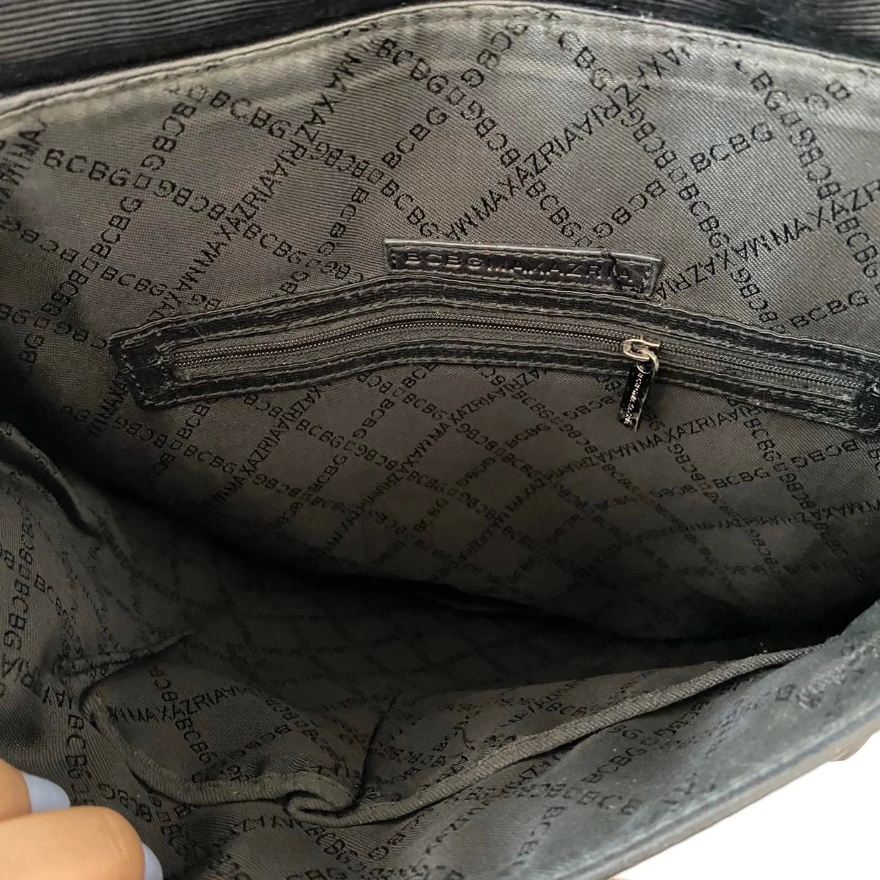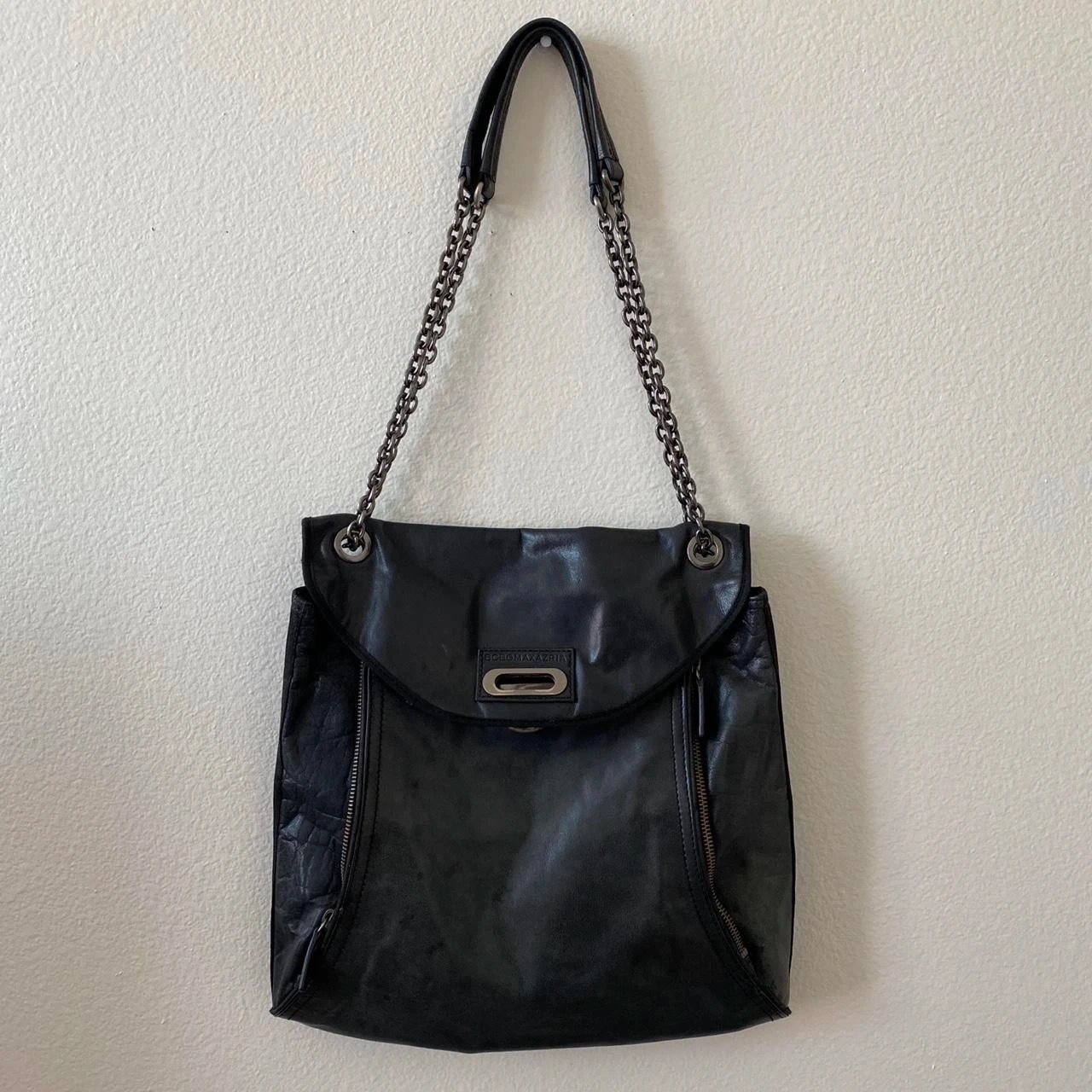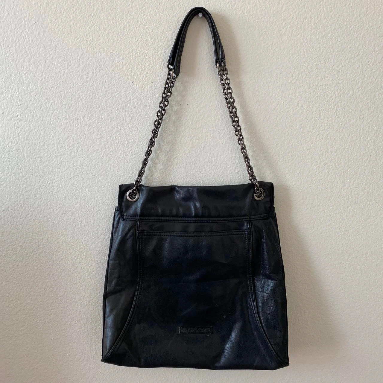 black leather tote bag with chain detailing. It's in great condition and ready for a new owner! Perfect for everyday use or a night out