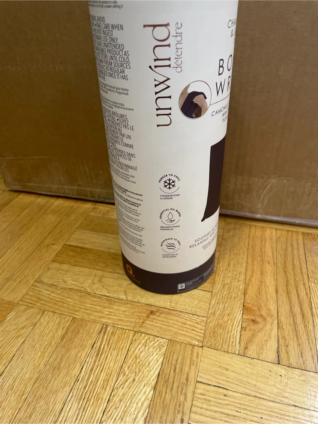 This Aroma Home Unwind body wrap is infused with chamomile and jasmine essential oils. It soothes aching muscles and promotes relaxation. It measures 60 cm x 12.5 cm (23.6 in x 4.9 in) and can be frozen or chilled before use.