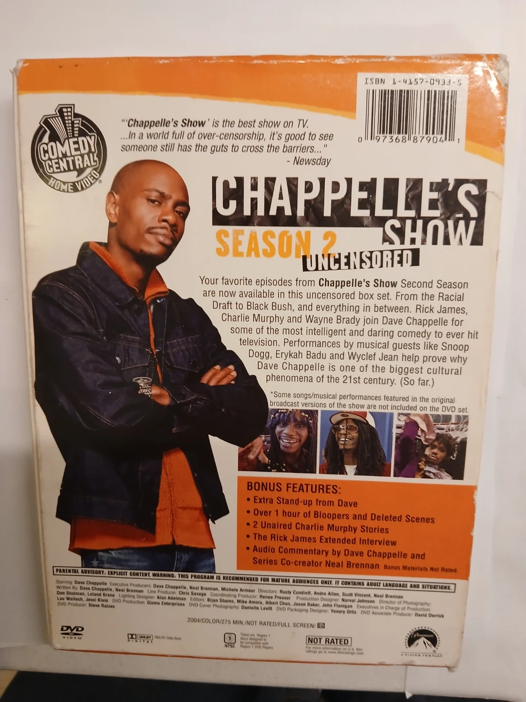 This is Chappelle's Show Season 2 Uncensored on DVD. It's the best show on TV, according to Newsday. Includes your favorite episodes from the uncensored box set. Bonus features: Over 1 hour of bloopers and deleted scenes, A "Chappelle's Music" extra, The Rick James Uncensored Interview, and Audio Commentary by Dave Chappelle and Series Co-creator Neal Brennan. Rated Not Rated.