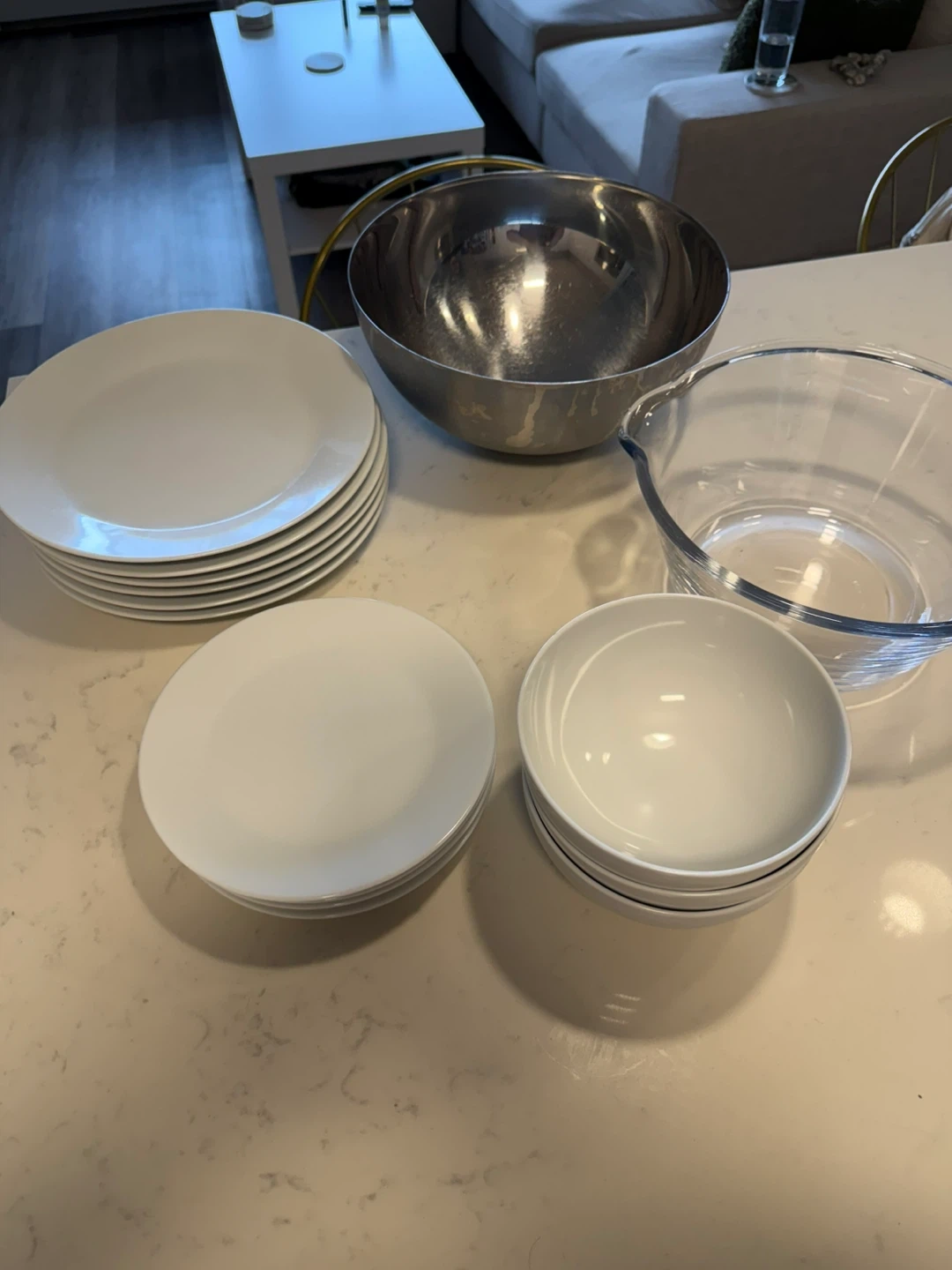 All dishwasher safe and in fairly good condition. Silver bowl looks a bit more used