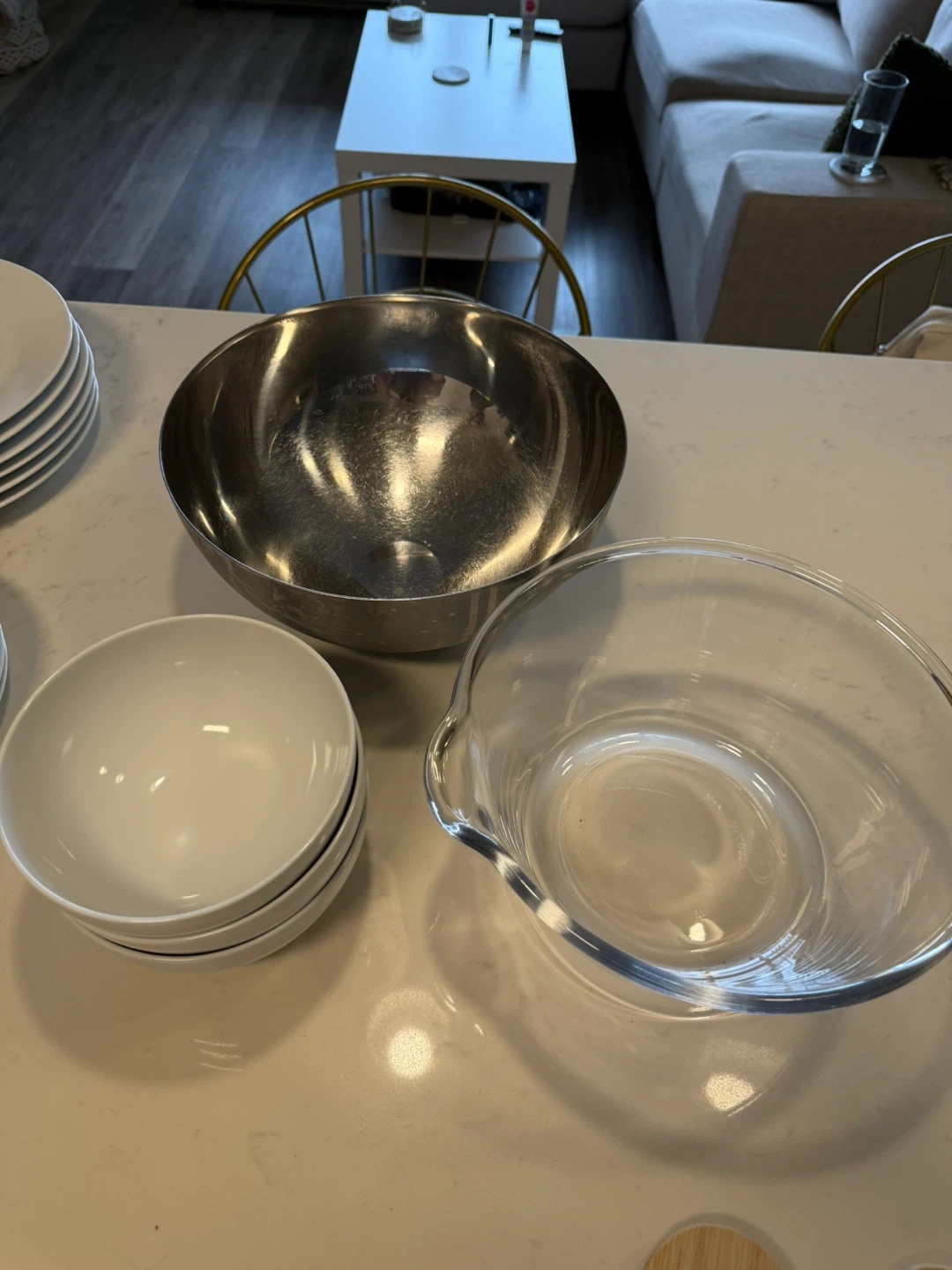 All dishwasher safe and in fairly good condition. Silver bowl looks a bit more used