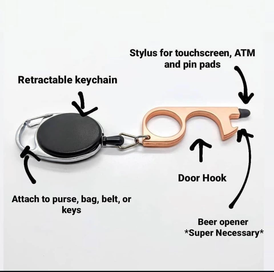 Contactless Retractable Keychain Bottle Opener Stylus Tool