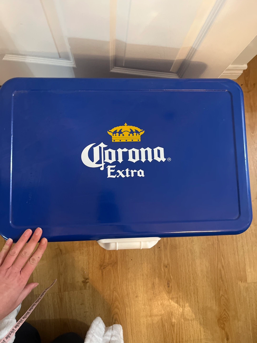 Selling a Corona Extra cooler in brand new condition! It's blue and white, perfect for keeping your ALL your drinks cold at parties or picnics. It features a drain spout for easy cleaning.