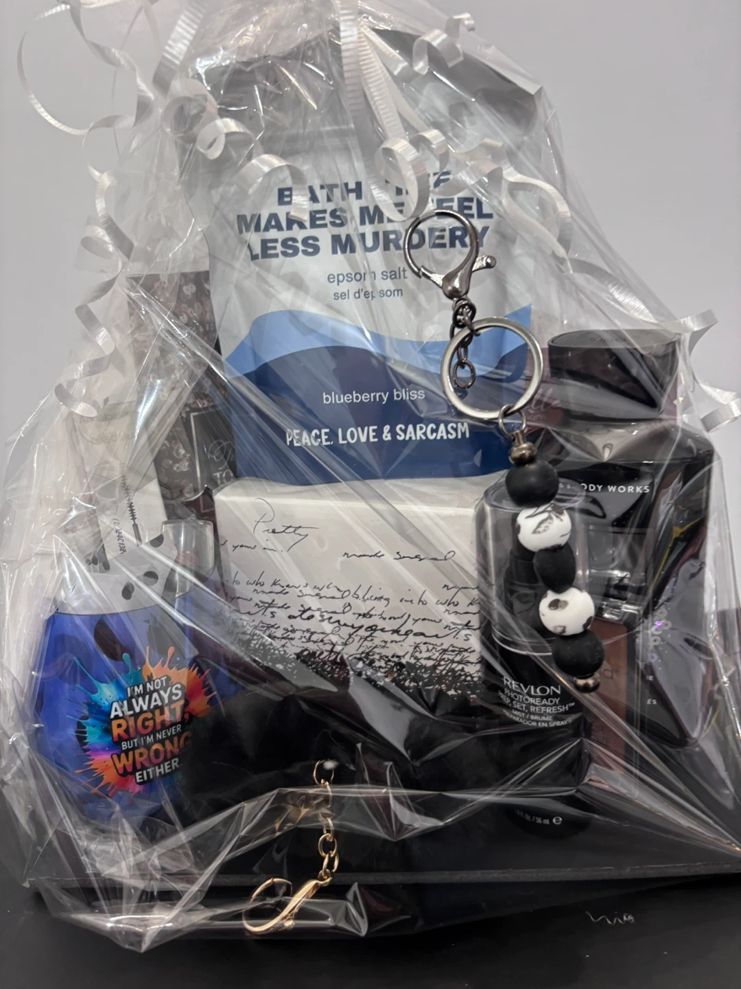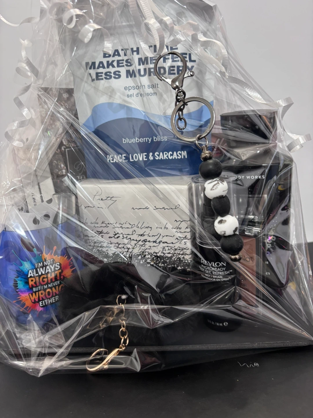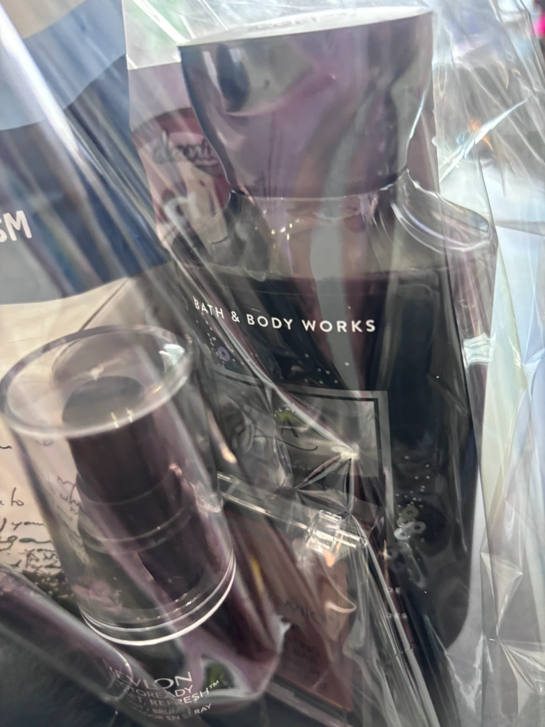 perfume , makeup accessories, and other goodies designed to spoil and delight. All arranged in a beautiful basket. value over $150