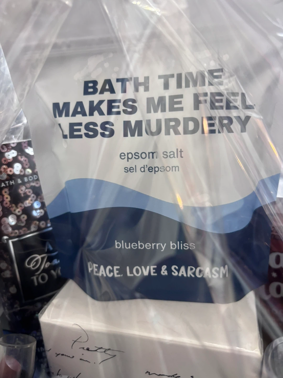 Gift the perfect pampering experience with this lovingly assembled Mother's Day basket, filled with bath and body essentials and a touch of humour. The items are all new .