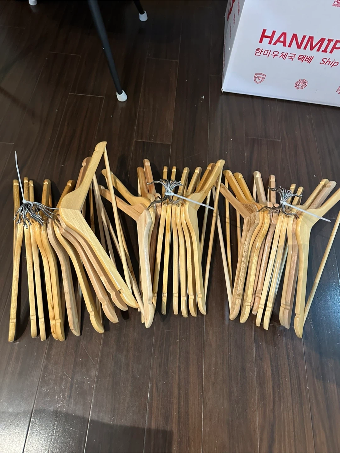 Selling a lot of 30 wooden clothes hangers! They're perfect for organizing your closet and keeping your clothes wrinkle-free. They are in great condition and ready for a new home