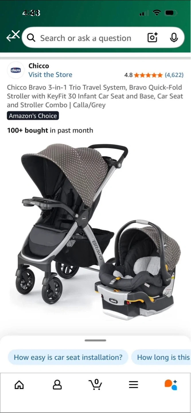 This is the Chicco Bravo 3-in-1 Trio Travel System. It includes the Bravo Quick-Fold Stroller and the KeyFit 30 Infant Car Seat and Base. The color is Calla/Grey. It's a convenient travel system for on-the-go families!