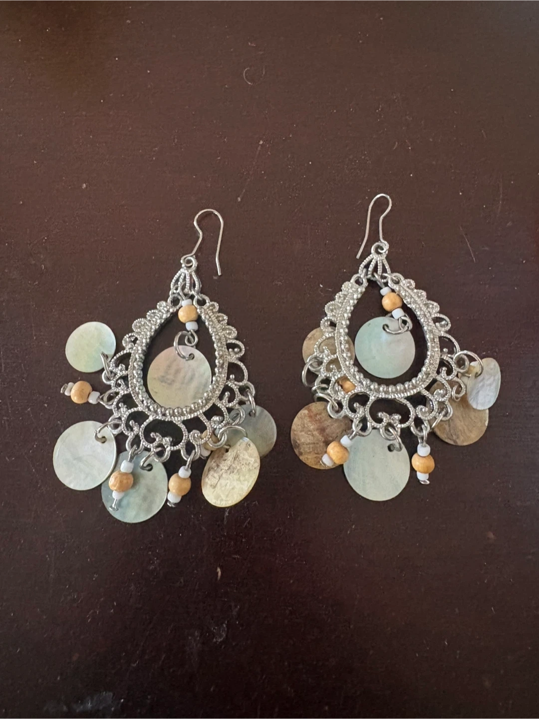 The coral drop earrings were repurposed from a 1950s ladies bracelet.