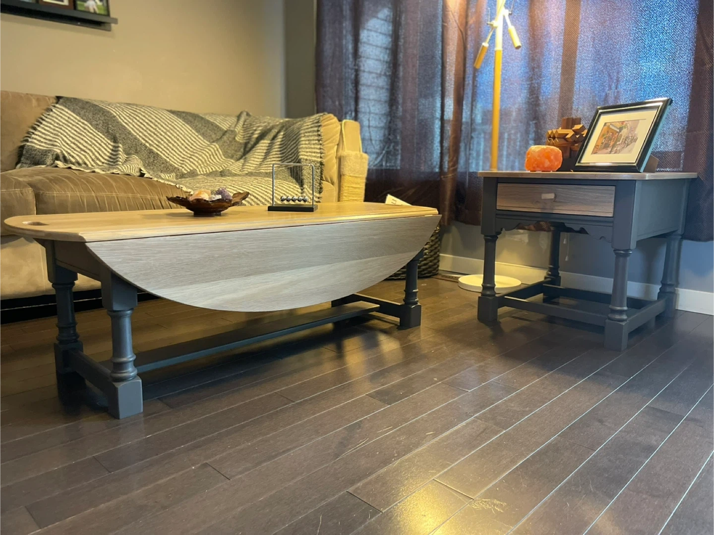 Refinished Drop Leaf Coffee Table and Side Table