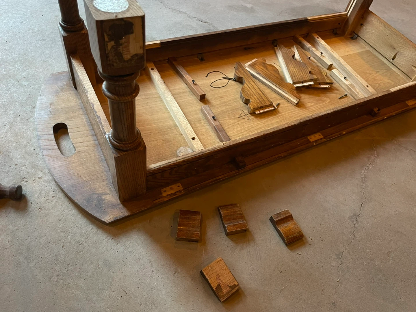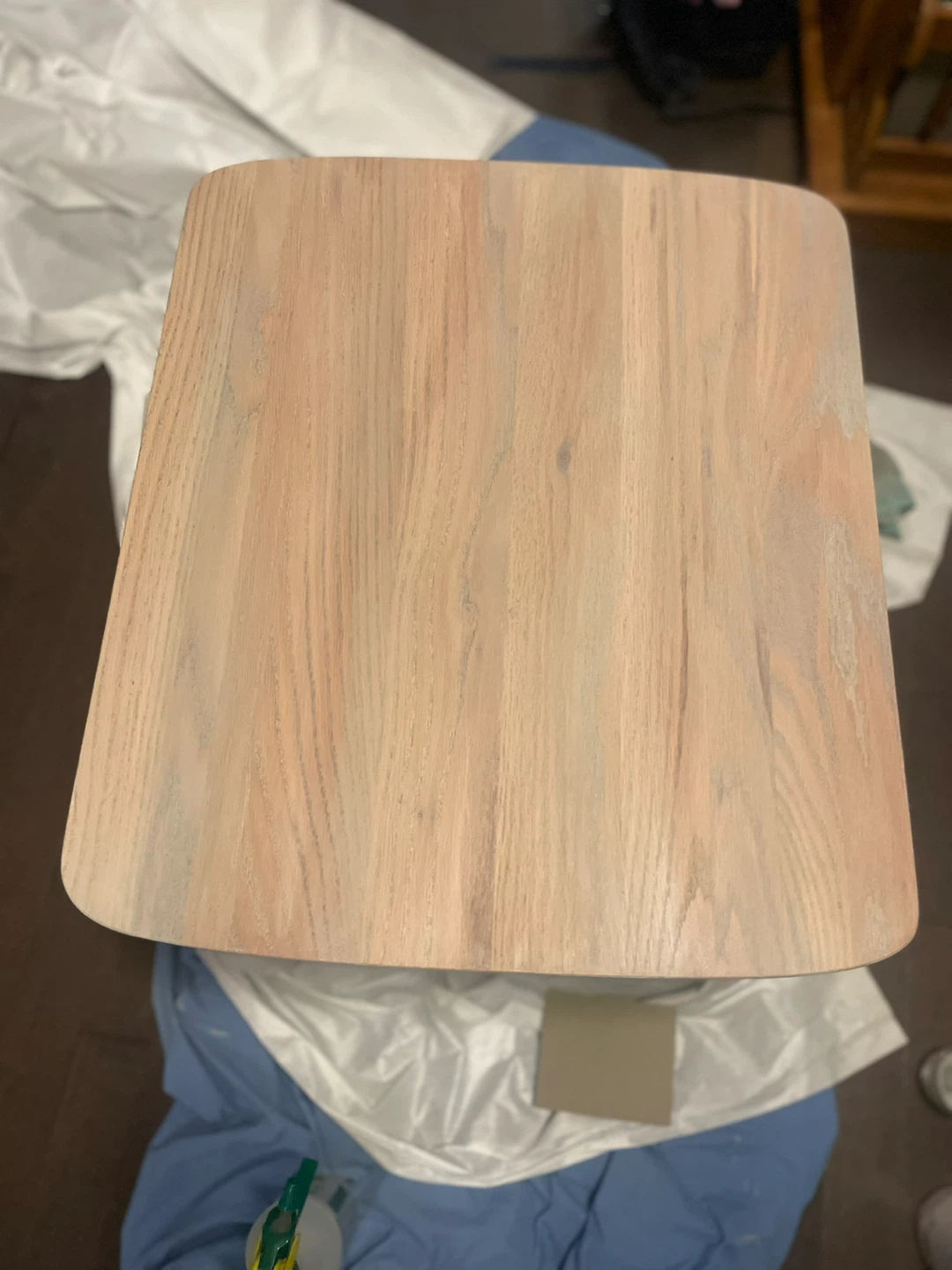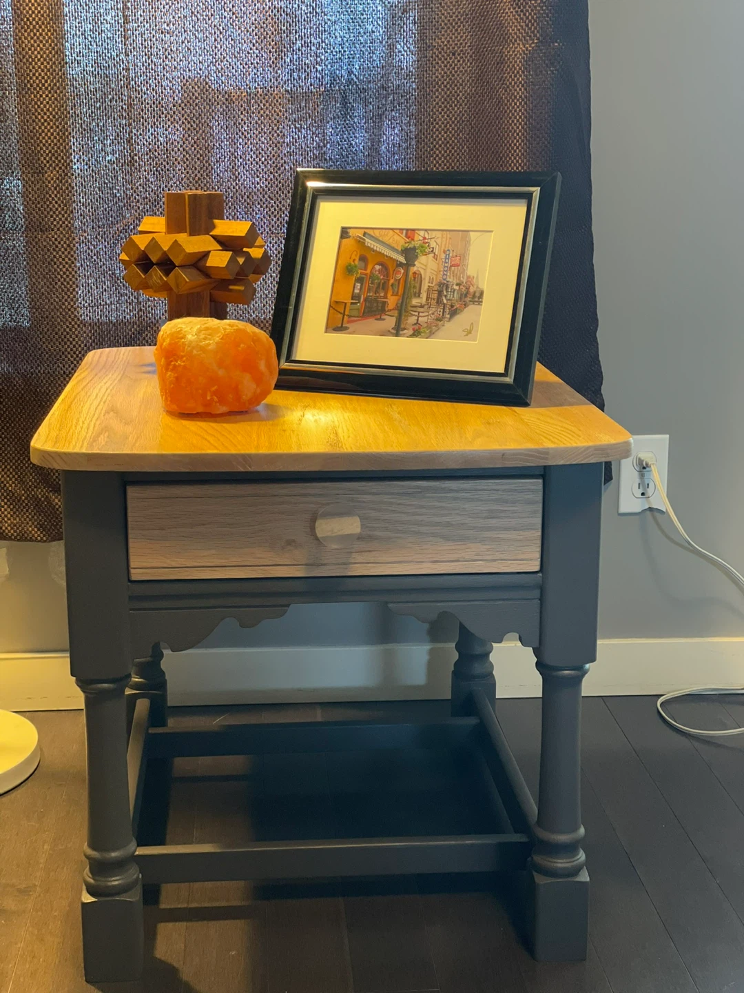 Tops and side table drawer - sanded and paint wash was done with Country Chic’s Cheesecake, Tiger’s Eye (glaze), and Cut a Rug. Then sanded back and wash colours remain in grain of wood. Sealed with Water Based Varathane