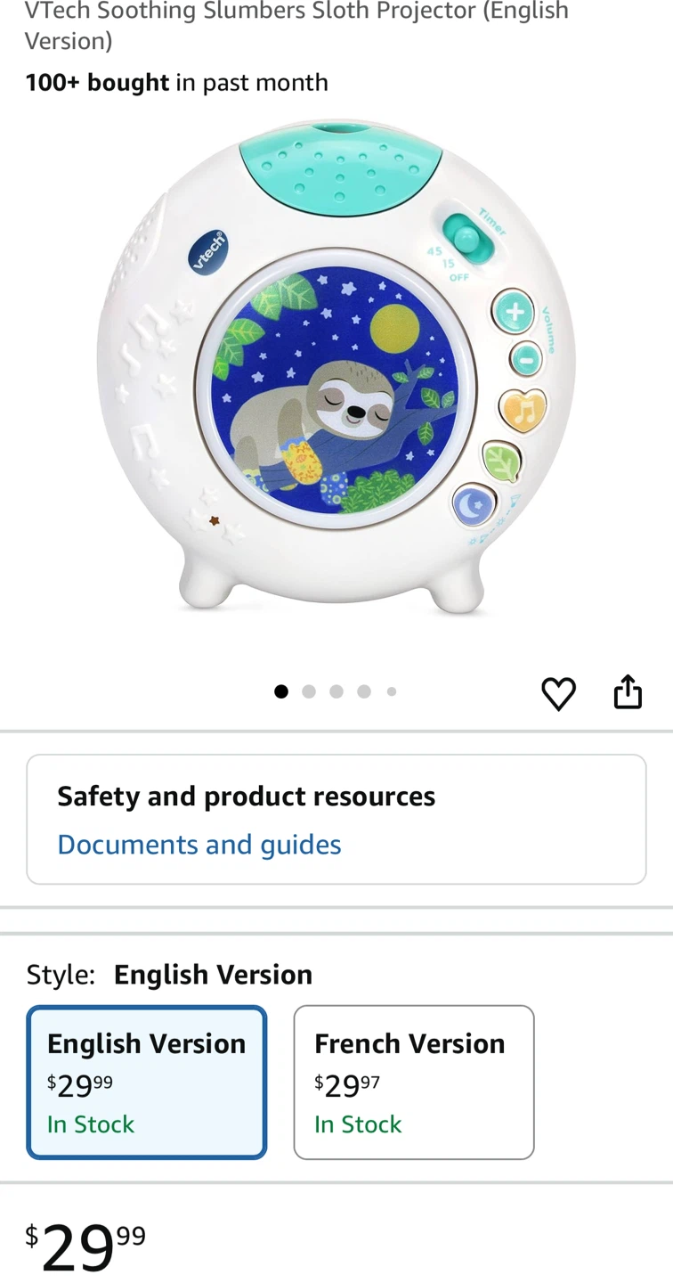 Selling a VTech Slumber Sloth Sound Machine. It's in used condition and ready to help your little one drift off to sleep!