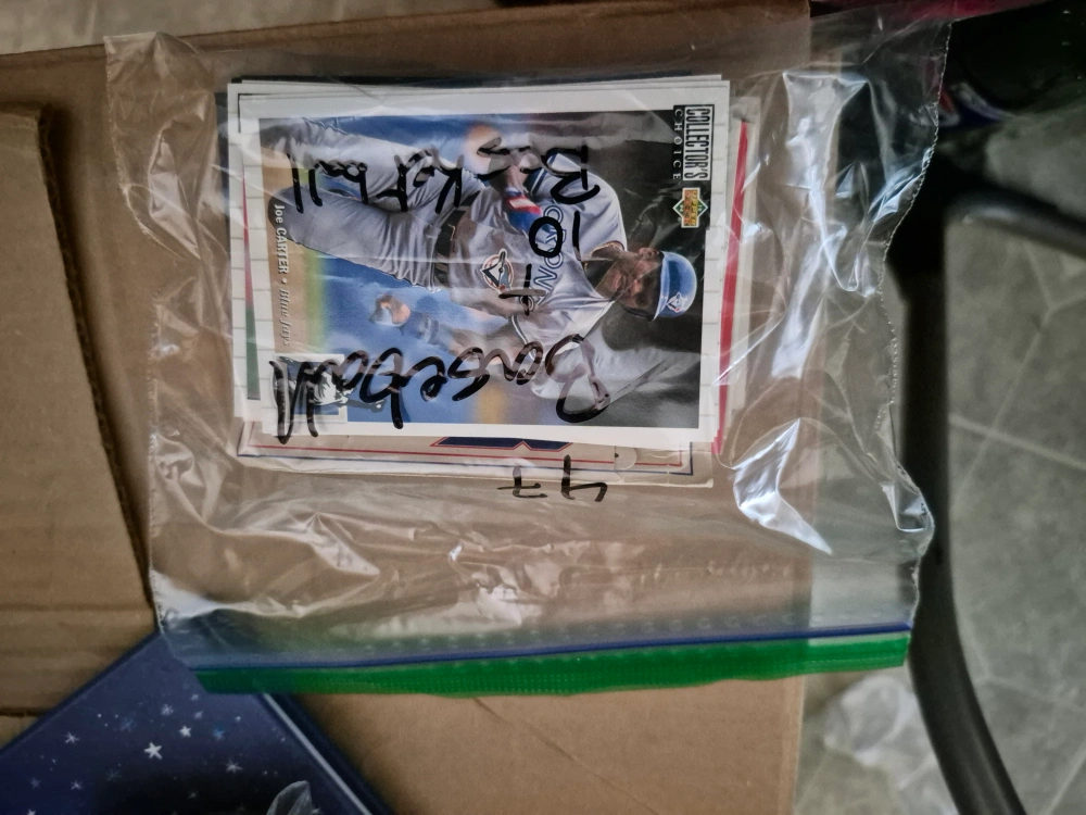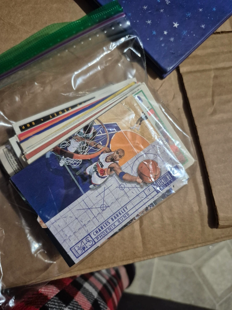 This is a collection of assorted baseball and basketball cards. Includes cards featuring Charles Barkley of the Phoenix Suns and Joe Carter. Cards are in a plastic bag.