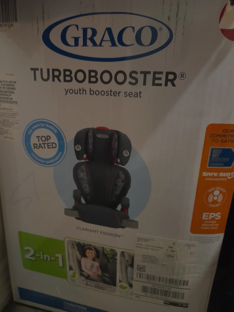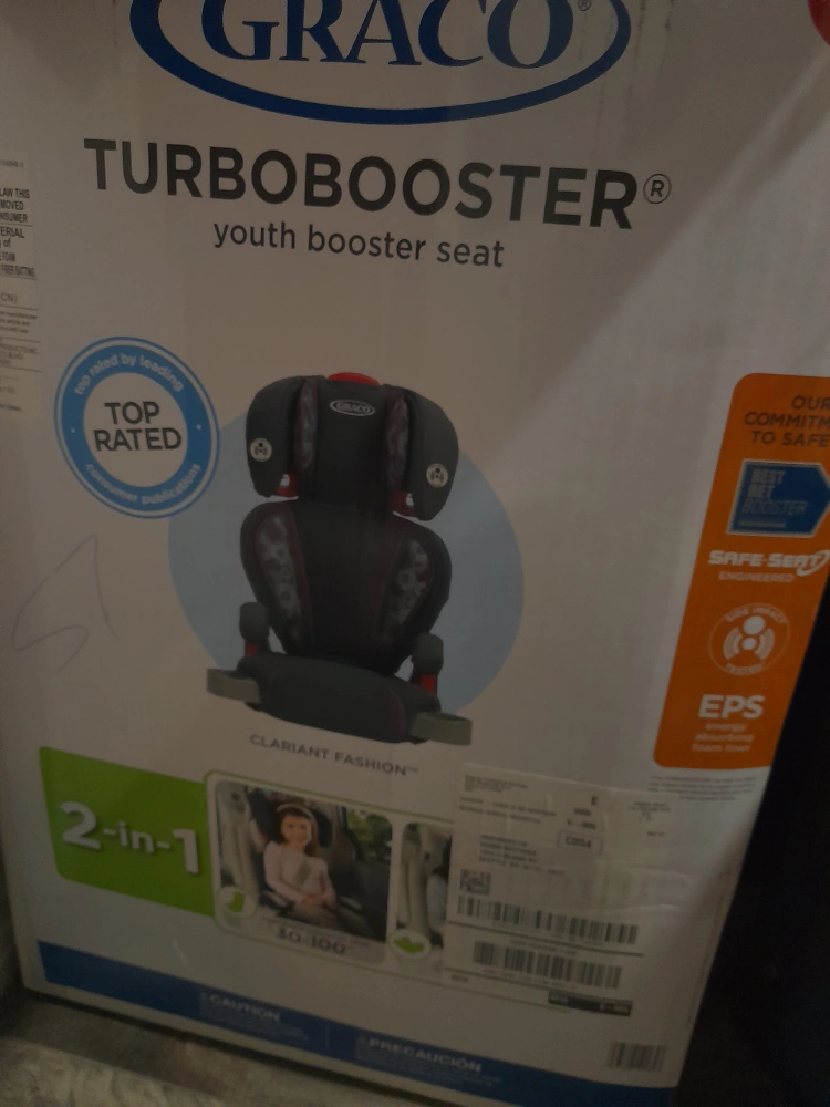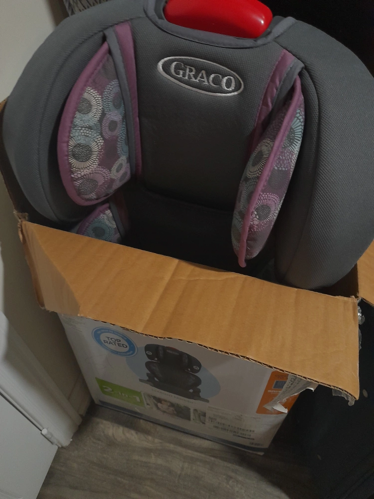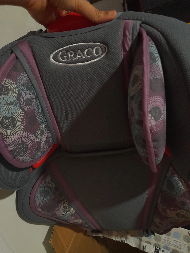 This Graco TurboBooster is in great condition and includes the original box. The booster seat is grey and purple with a floral pattern. It is a 2-in-1 booster that can be used with a harness or as a backless booster 3-10years. The seat has been cleaned and is ready for use.