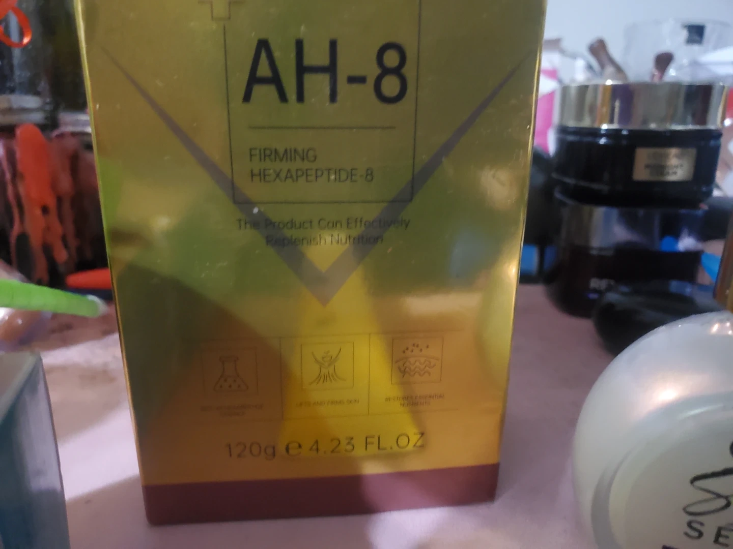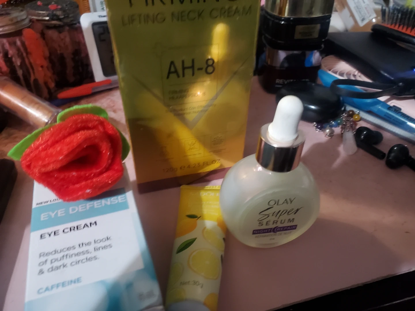 AH-8 Firming Lifting Neck Cream, 120g. Includes Olay Super Serum Night Repair, 30 mL, and Sadoer Lemon Fruit Hand Cream, 30g. This set is perfect for a comprehensive nighttime skincare routine, addressing firmness and hydration for your neck, face, and hands.