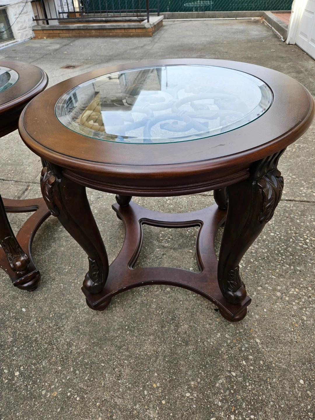 2 large Ashley furniture glasstop End tables. 28 inches long 26 inches height.