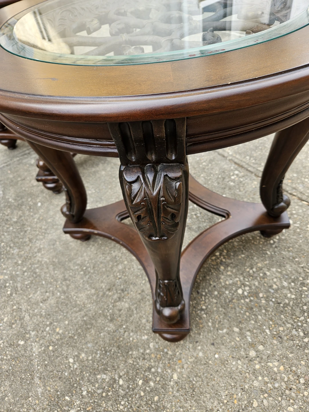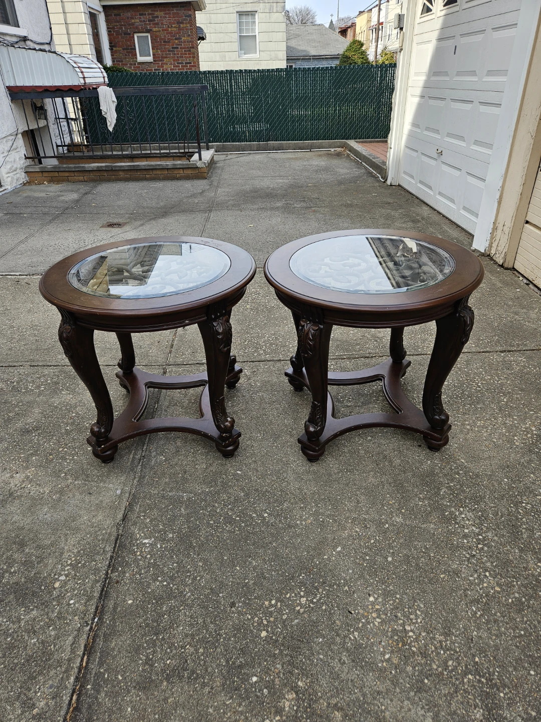 2 large Ashley furniture glasstop End tables. 28 inches long 26 inches height.