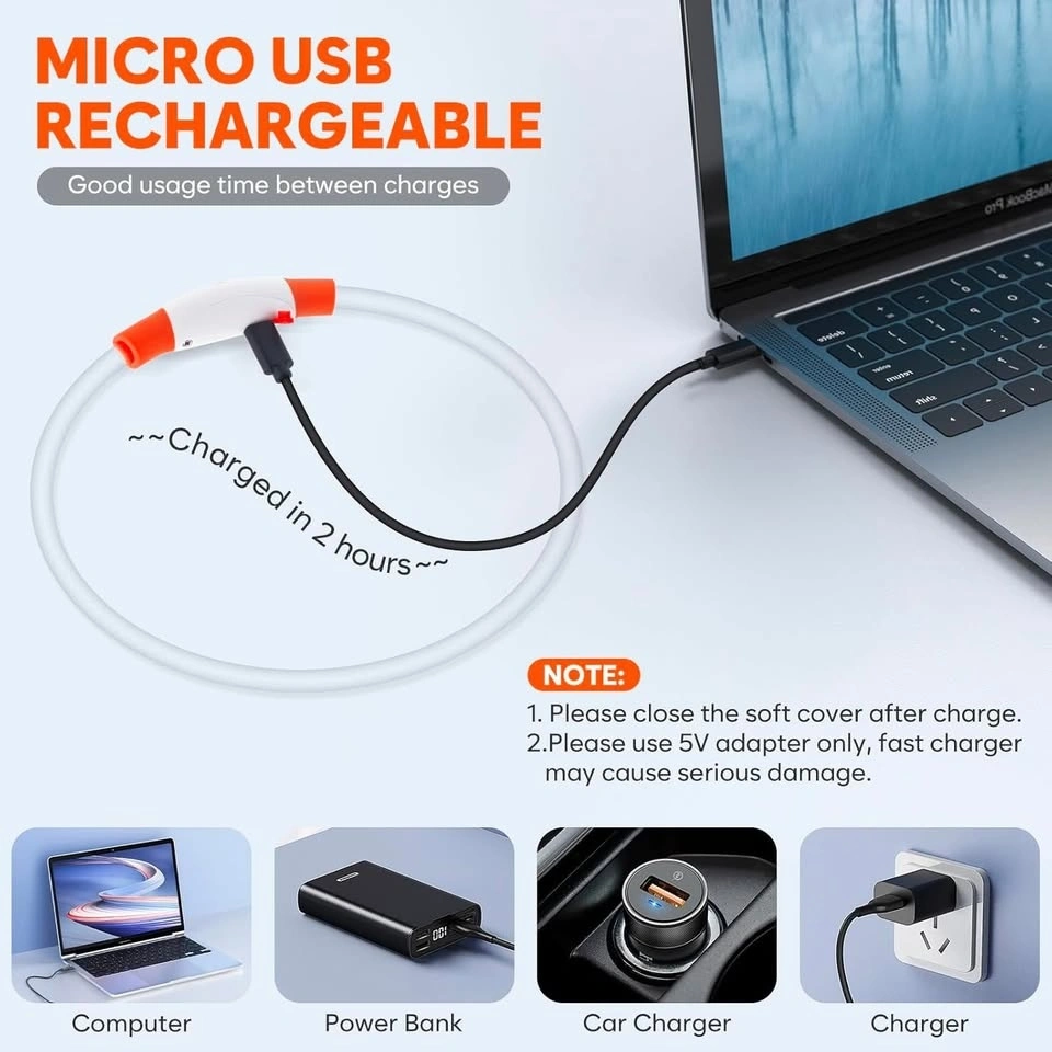 LED Dog Collar, Rechargeable, Cut to Size