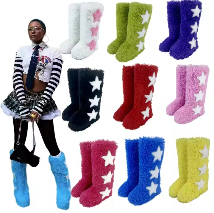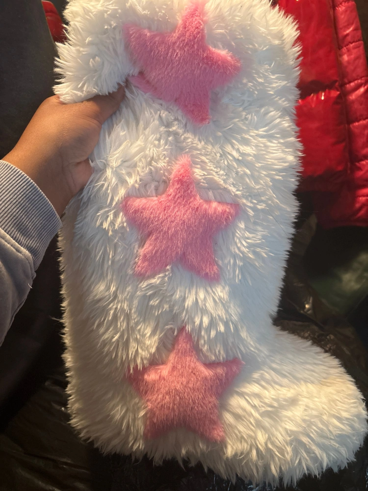 NEW!!! Fluffy knee-high boots. Features 3 White or Pink stars. Available in multiple colours. Soft and cozy.