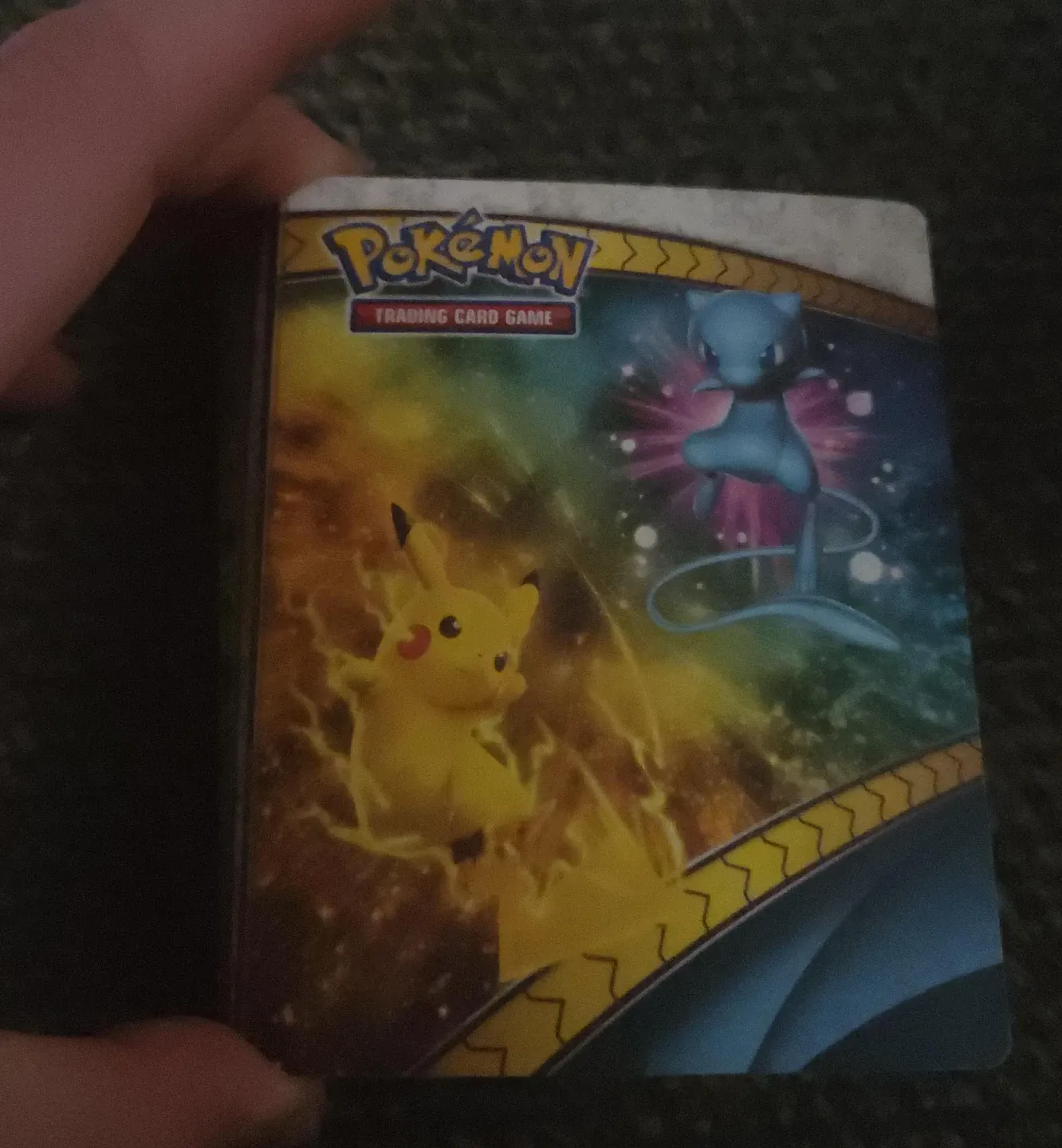 This is a Pokemon Trading Card Game deck box featuring Pikachu and Mew. It's designed to hold your trading cards. Great for keeping your collection organized!