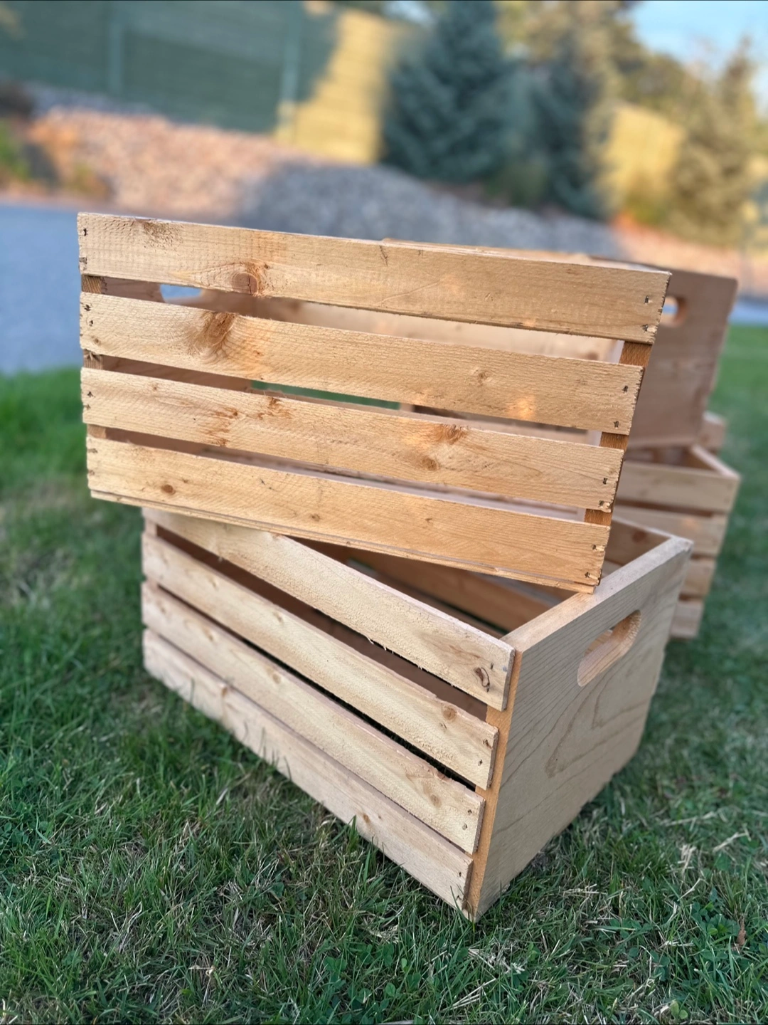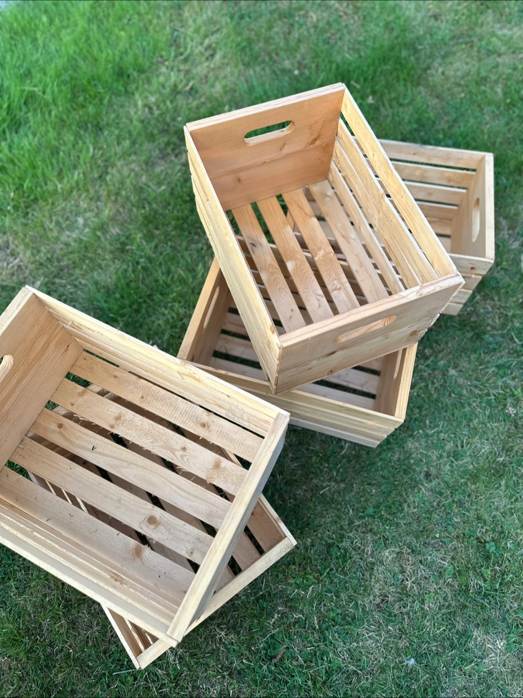 Selling a set of wooden crates. They're in great shape and ready for your next project or storage needs! Perfect for adding a rustic touch to any space, Christmas gift baskets etc.
