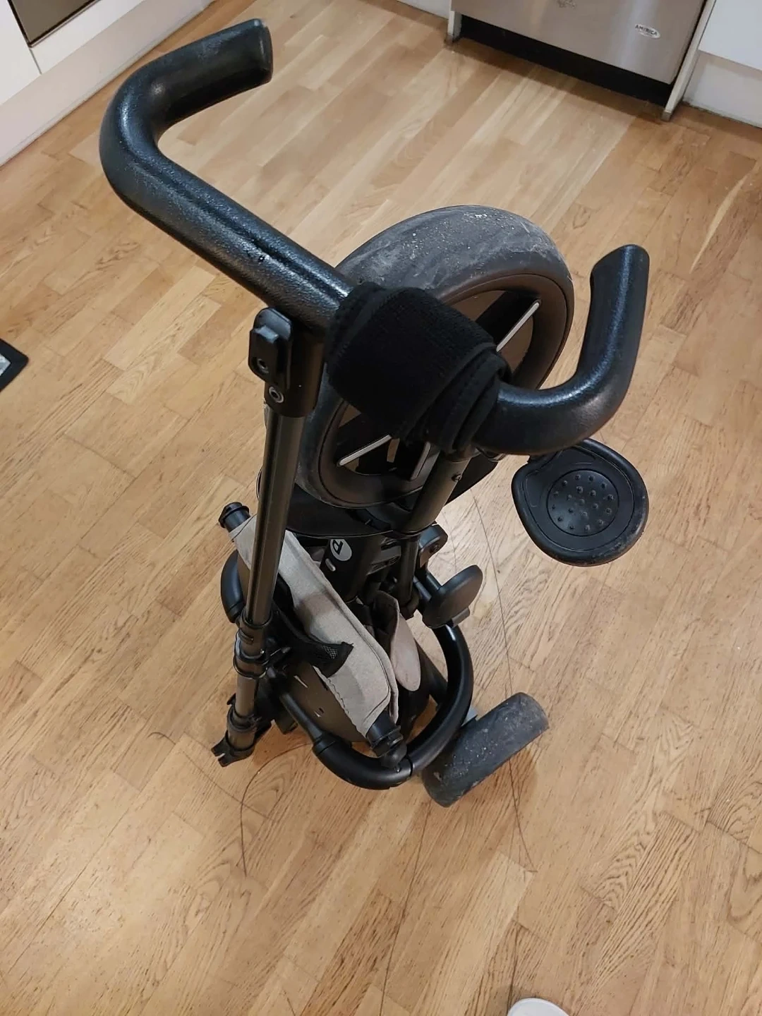 Great for little ones. It features a comfortable seat and adjustable handle, also foldable.It's perfect for outdoor adventures!