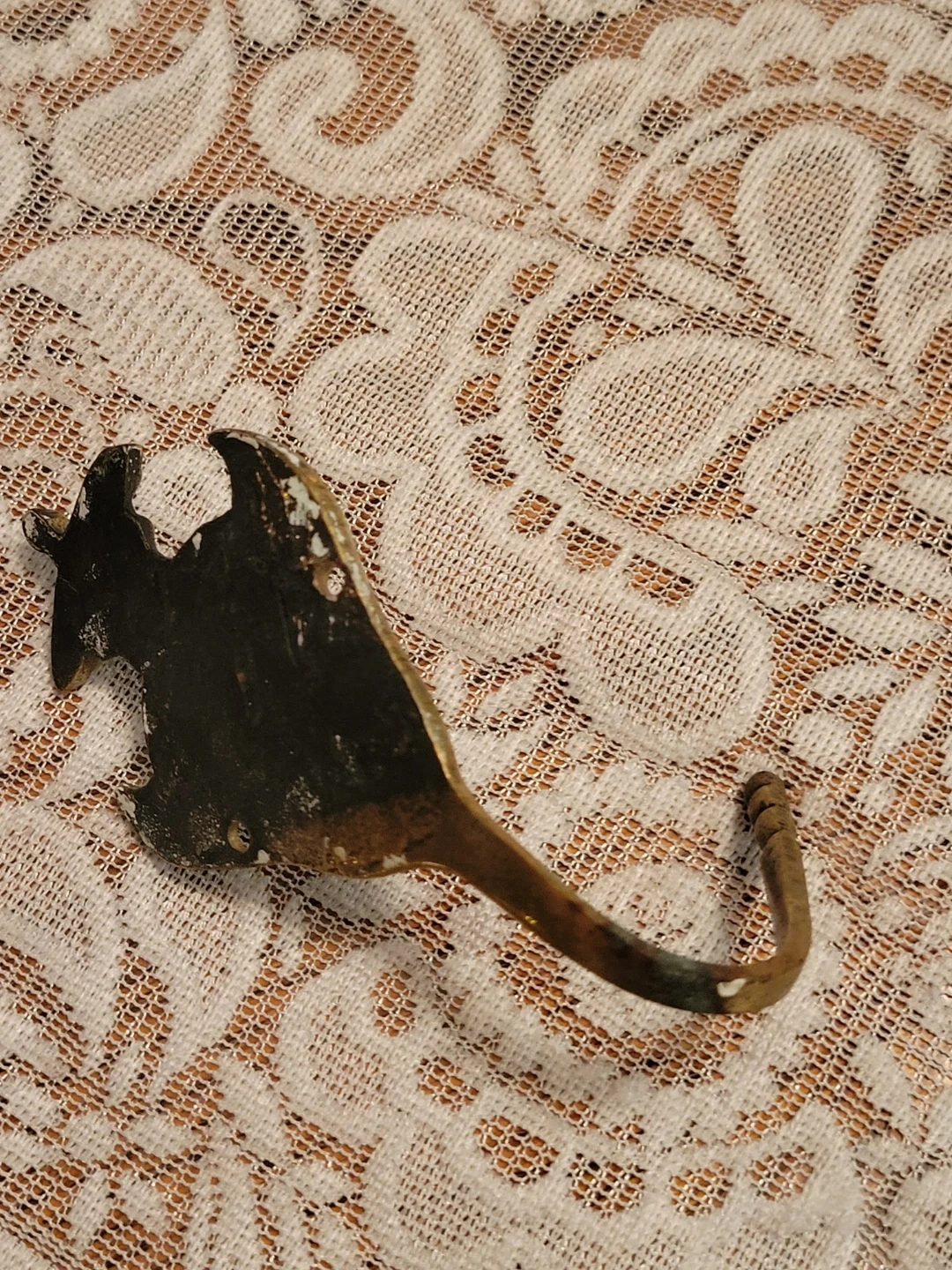 Rare.Antique Brass Wall Coat Hook with Crown and Fleur-de-lis