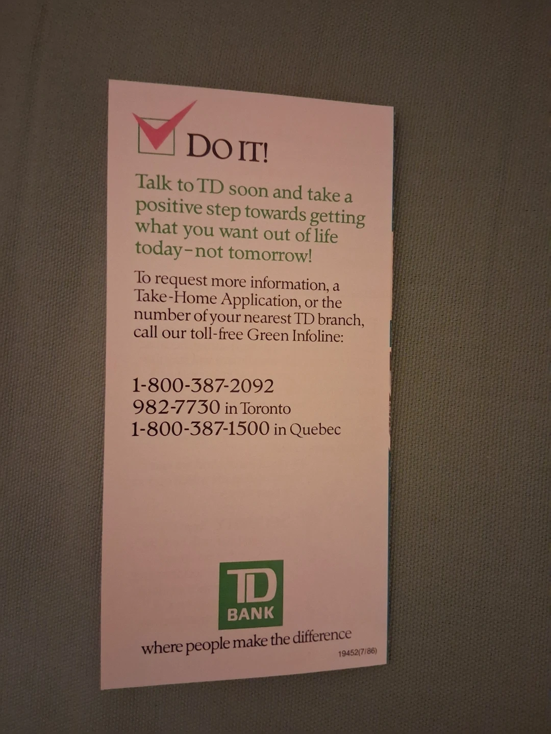 Buy & SellVintage 1986 TD Personal Loan brochureVintage 1986 TD Personal Loan brochure$6Available for pickup in Mississauga. Cash only WHERE TO MEETBud Gregory Boulevard & Gatineau AvenueView MapSELLERRobert EHurontario717 reviews0 chats·0 favorites·6 viewsSEND CHAT TO SELLERHi Robert E! I’m interested in your listing.Hi Robert E! I’m interested in your listing.Get the Karrot app to chatSign In to chat
