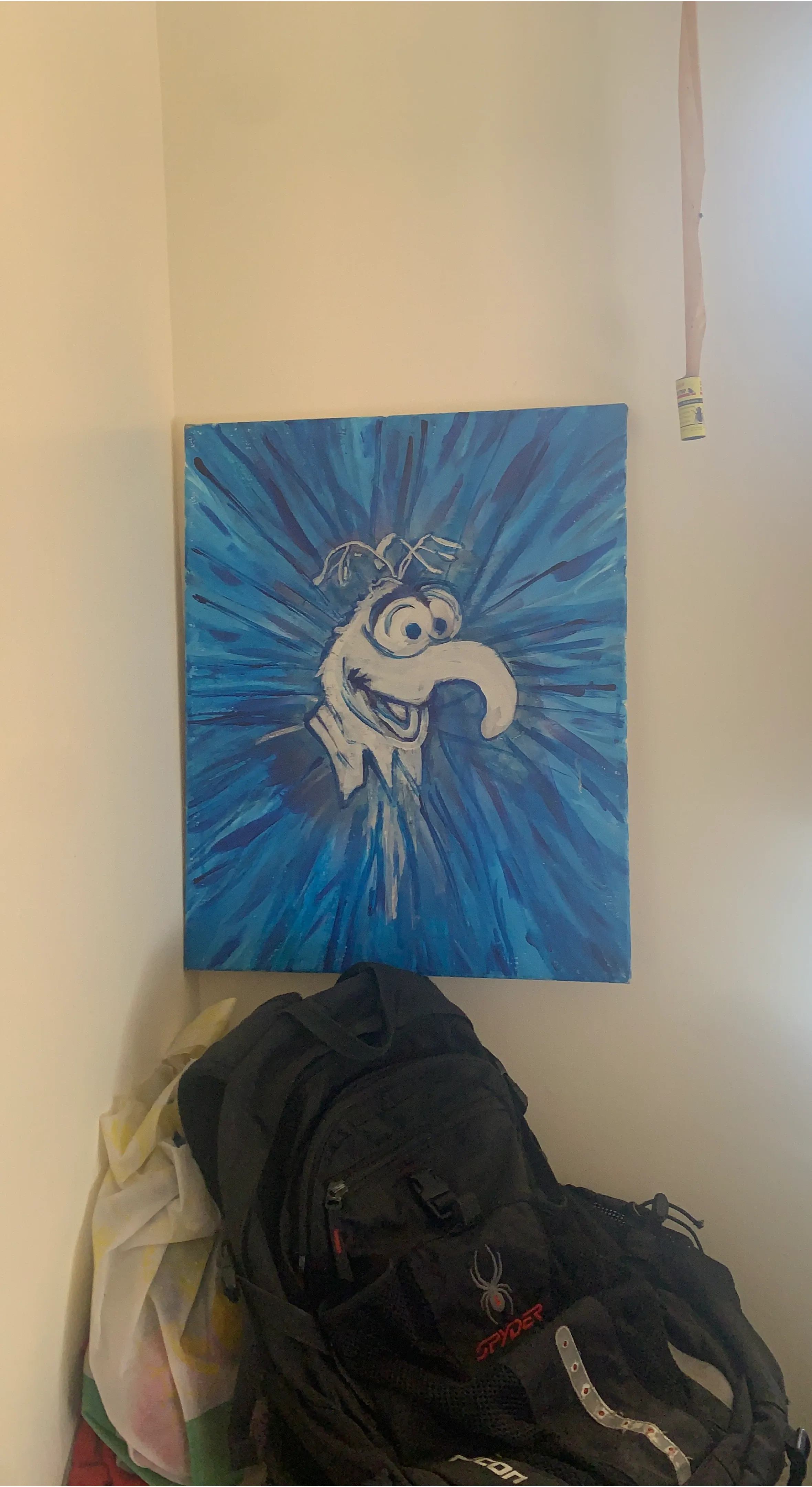Hand-painted canvas art featuring Gonzo from The Muppets. Blue abstract background. Perfect for any Muppets fan's room!
