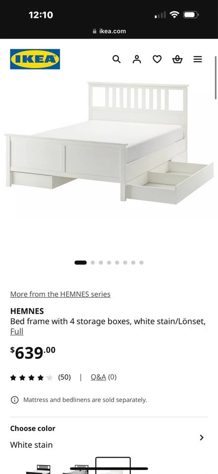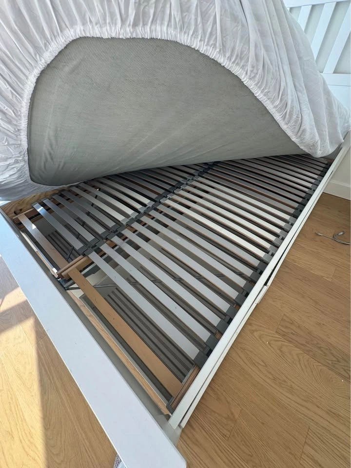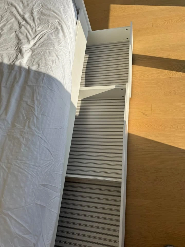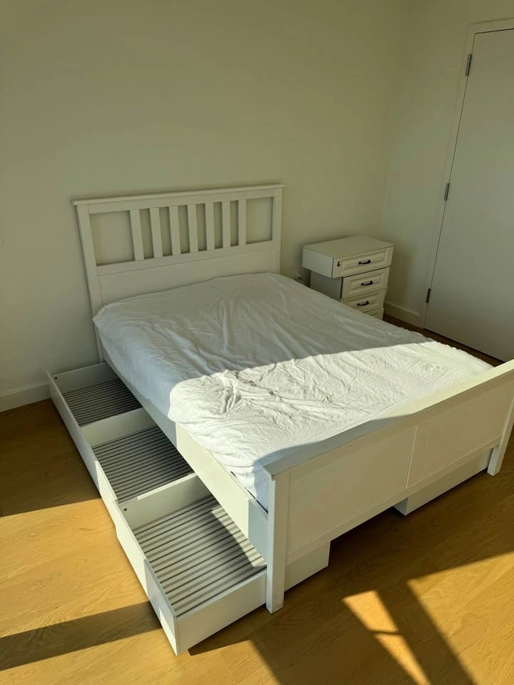 Full size white bed frame with 4 large drawers from IKEA.