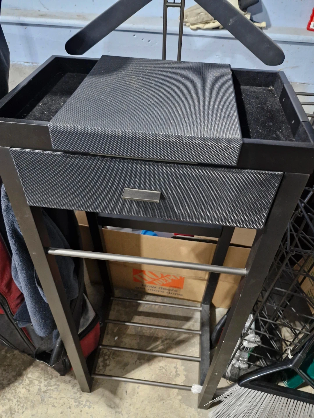Buy & SellBlack Valet StandBlack Valet Stand$40Selling a valet stand in good condition. It features a drawer, top tray, and bars for hanging clothes. Great for organizing your wardrobe!ConditionGoodDimensions12x12x72WHERE TO MEETcalihooView MapSELLERverified550899Calahoo661 review0 chats·1 favorites·24 viewsSEND CHAT TO SELLERHi 550899! I’m interested in your listing.Hi 550899! I’m interested in your listing.Get the Karrot app to chatSign In to chat