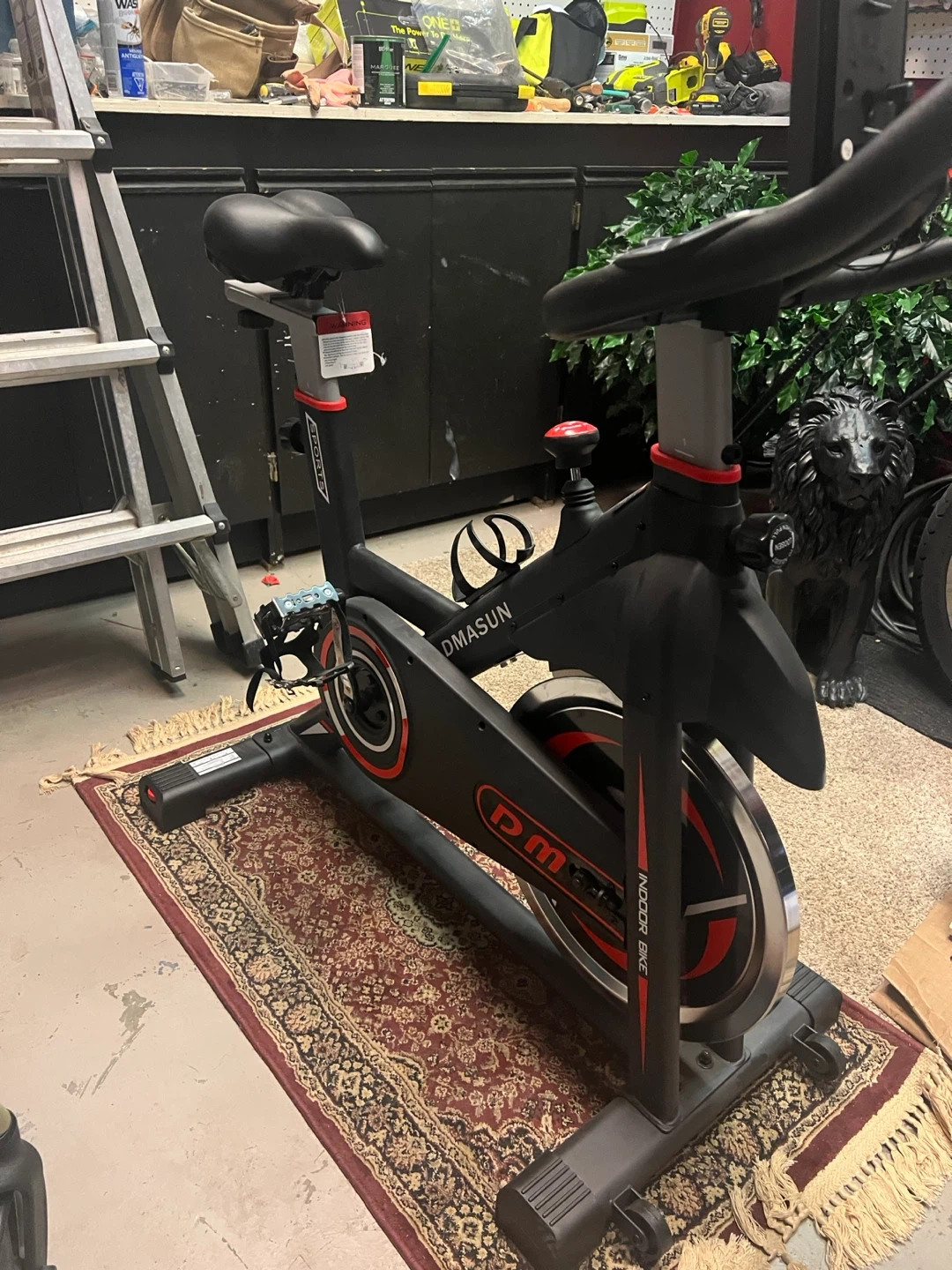 Selling a Dmasun indoor exercise bike in black and red. It's a great way to get a workout at home! The bike features magnetic resistance and a comfortable seat cushion. ***THIS BIKE WAS STORED IN MY HOUSE, NO DIRT OR DUSY****
