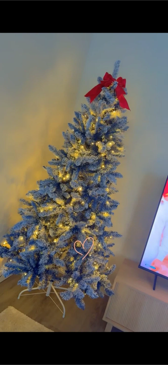 Selling a beautiful flocked blue Christmas tree! It's 7ft tall and will add a lovely wintery touch to your home for the holidays. The tree has a full appearance with 1102 branch tips, so it looks very realistic. Lights are not included.