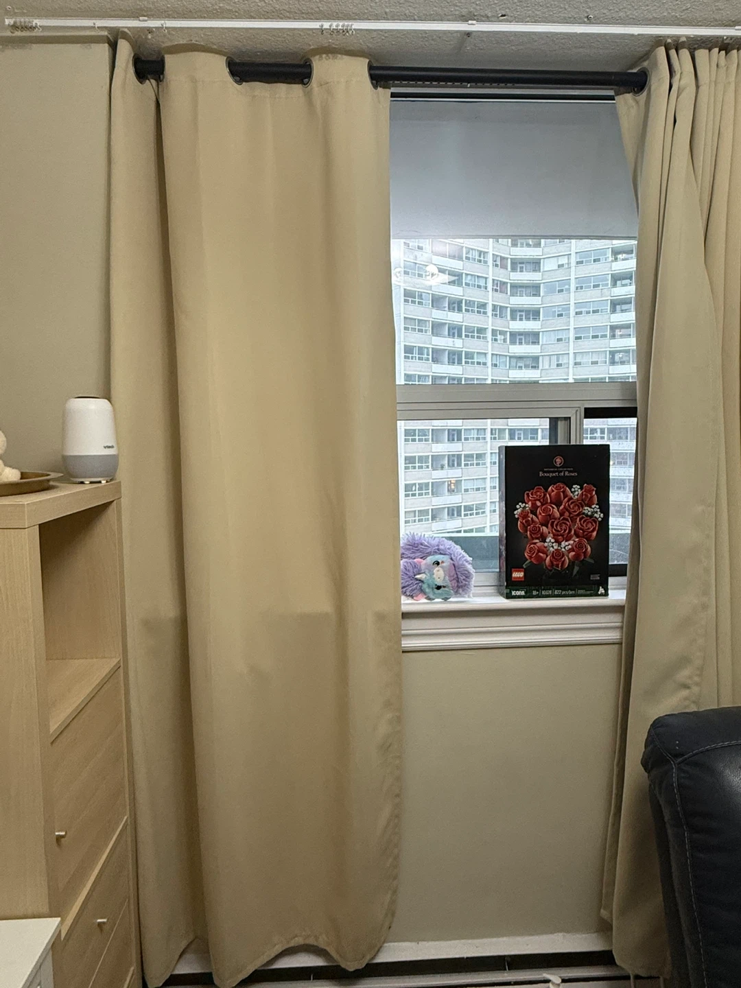 Four off white blackout curtains that bring aesthetic to any room. I’m giving away a tension curtain rod with the curtains for free!