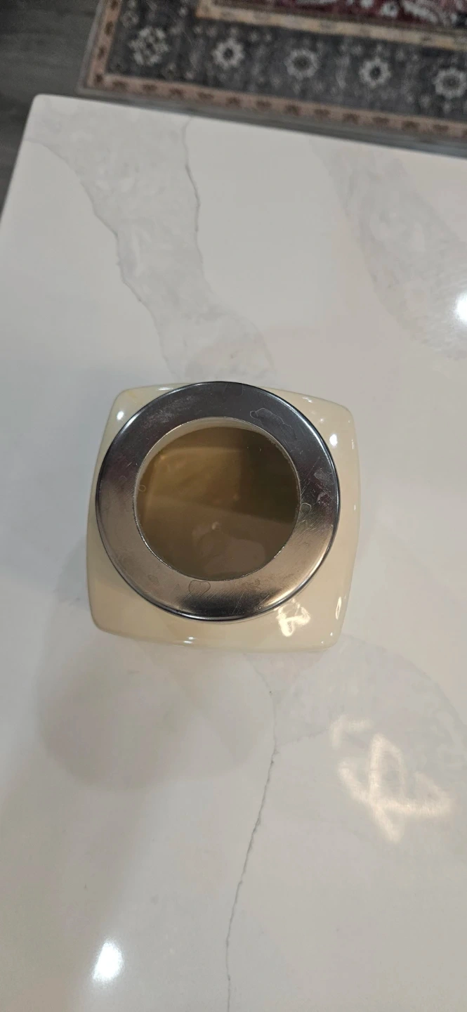 Selling a cute 'Sweet Home' tea canister! It's in great condition and would look lovely in any kitchen. It's a creamy white colour with a silver lid, ready to store your favourite tea bags or loose leaf tea