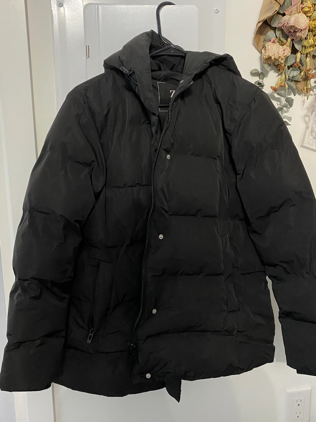 Selling a Zara black puffer jacket in size XS.