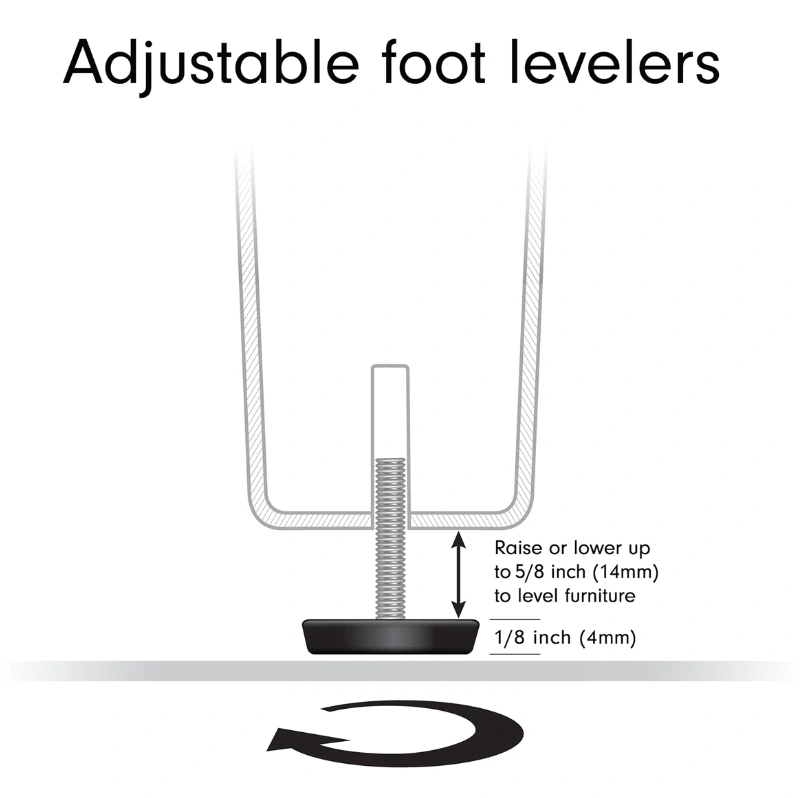 It measures 44 inches in length and 23 5/8 inches in width. It also has adjustable foot levelers for uneven floors